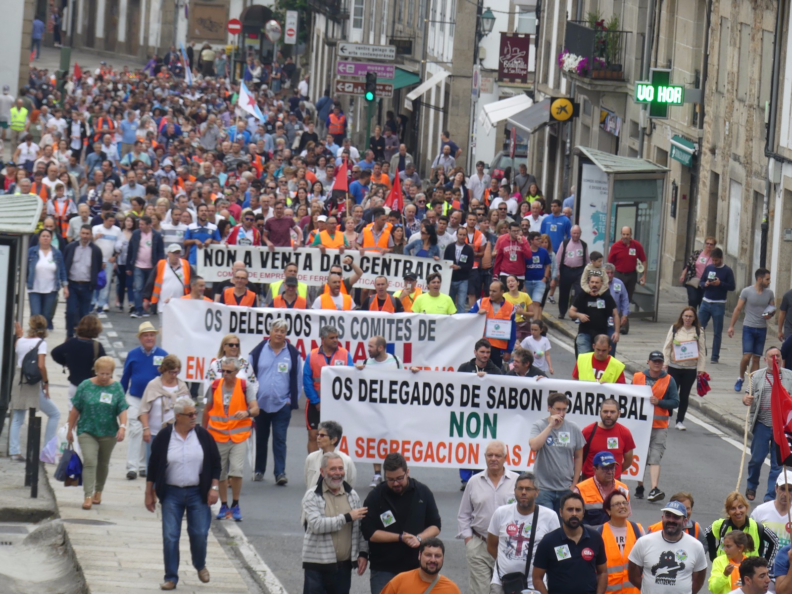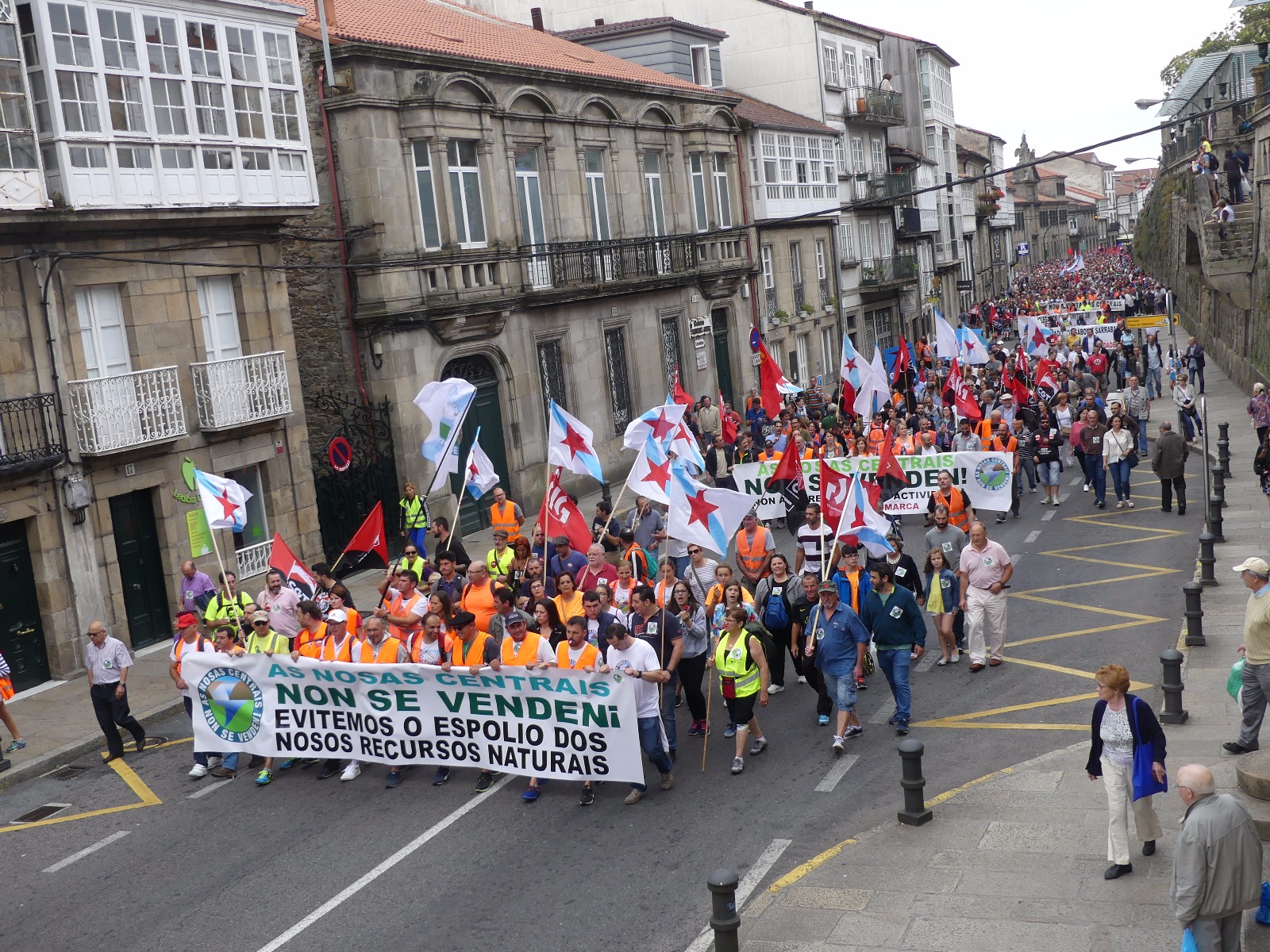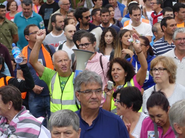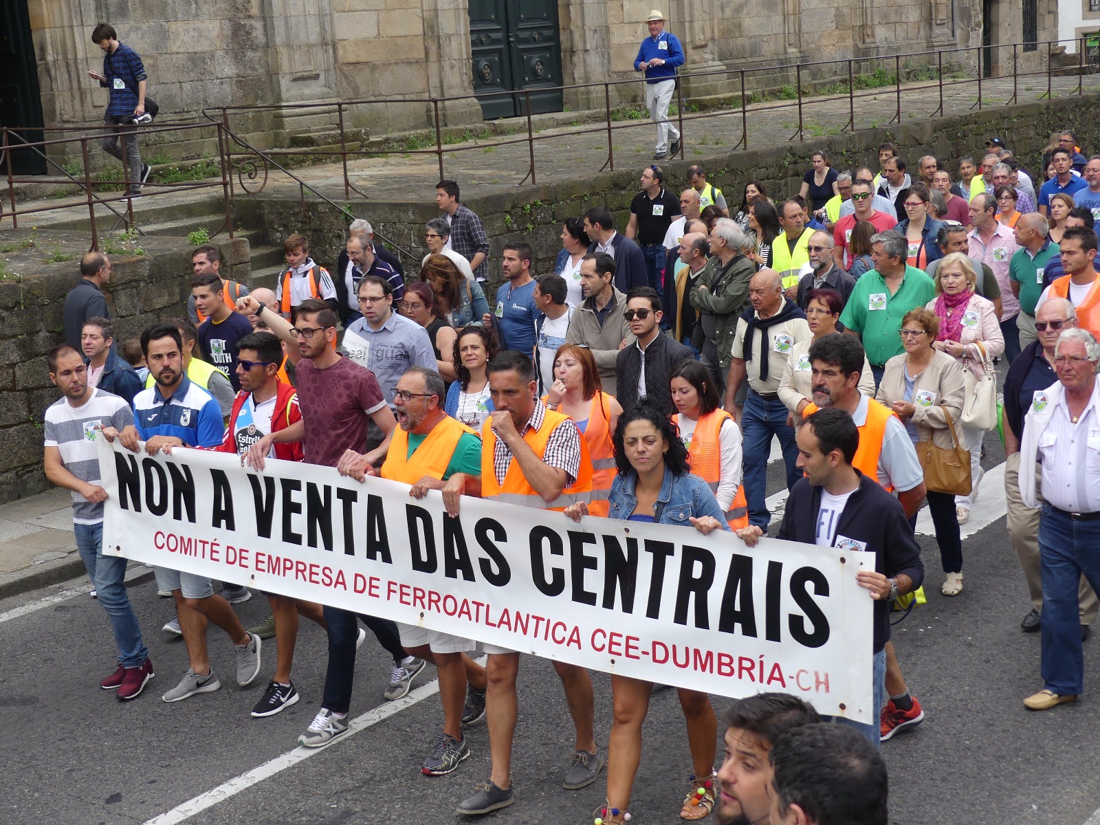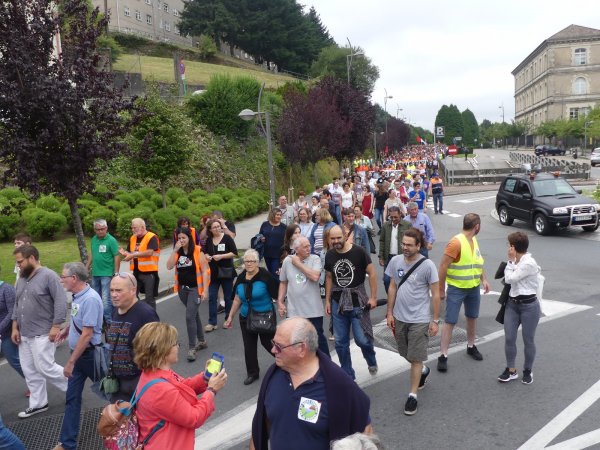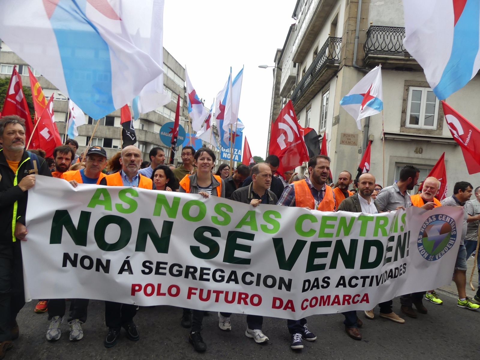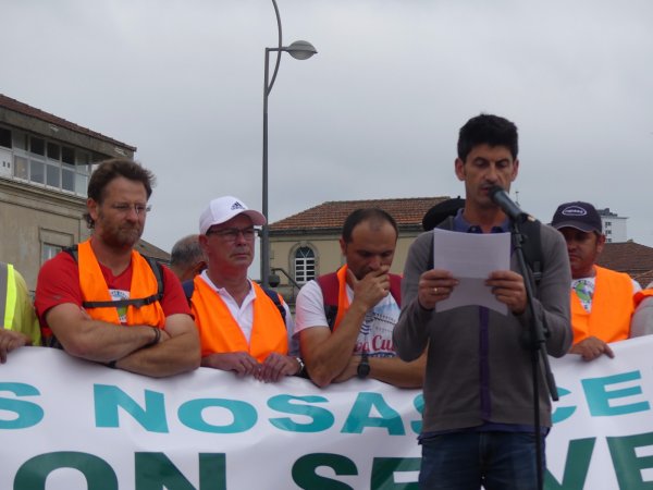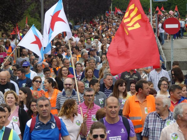 A Costa da Morte mobilizouse en pleno para sumarse en Compostela a marcha a pé que os/as traballadores/as de Ferroatlántica iniciaron o pasado mércores e que concluía este sábado cunha masiva manifestación contra a venda das centrais e en defensa dos nosos recursos naturais. Unha marcha na que, durante catro xornadas, unha columna humana encabezada polo secretario xeral da CIG, Paulo Carril, percorreu os preto de 70 quilómetros que separan Cee da capital de Galiza.