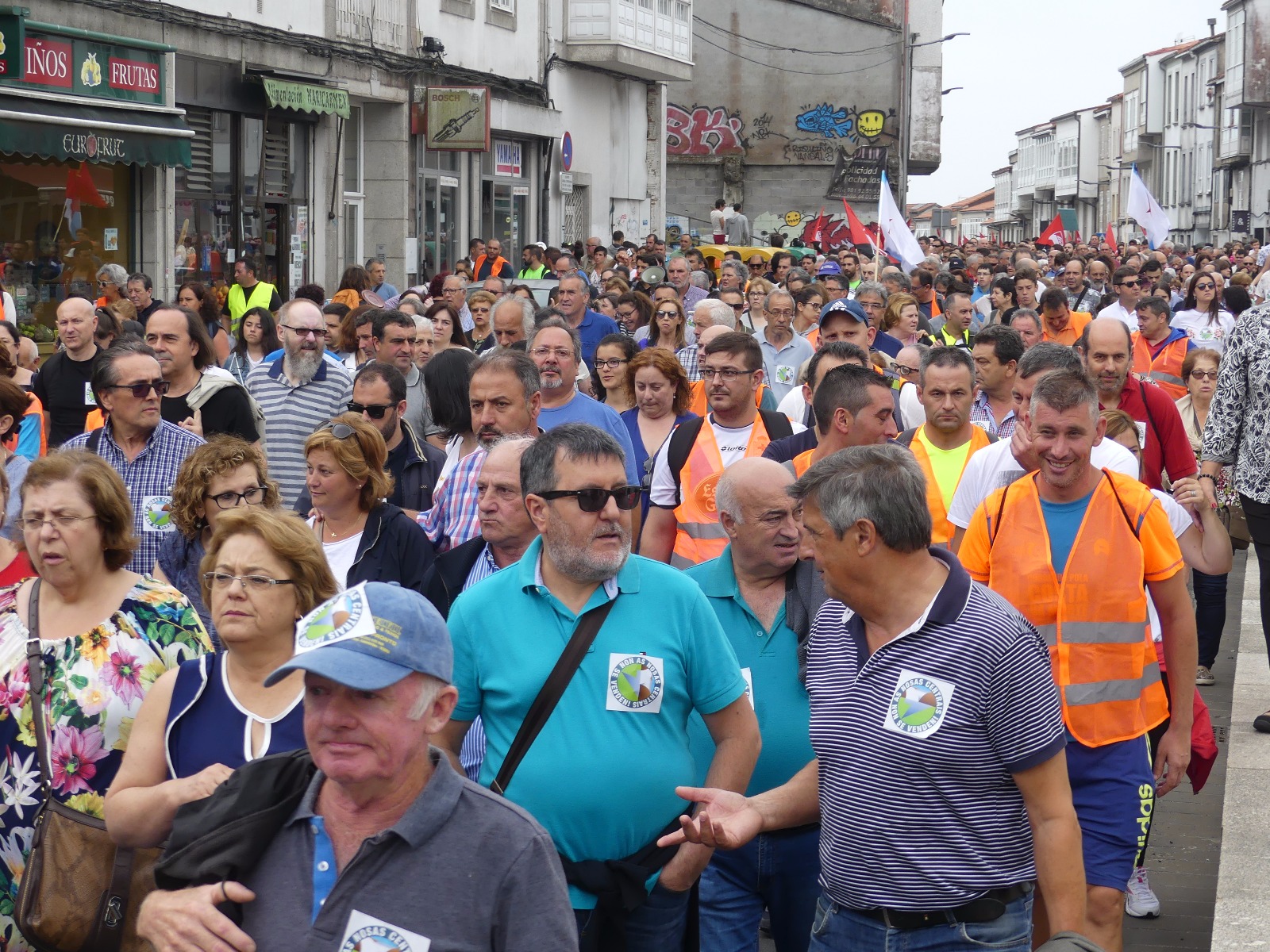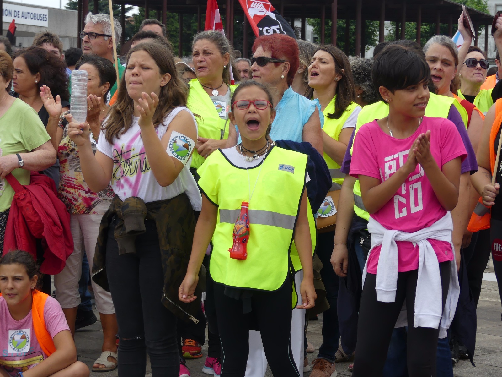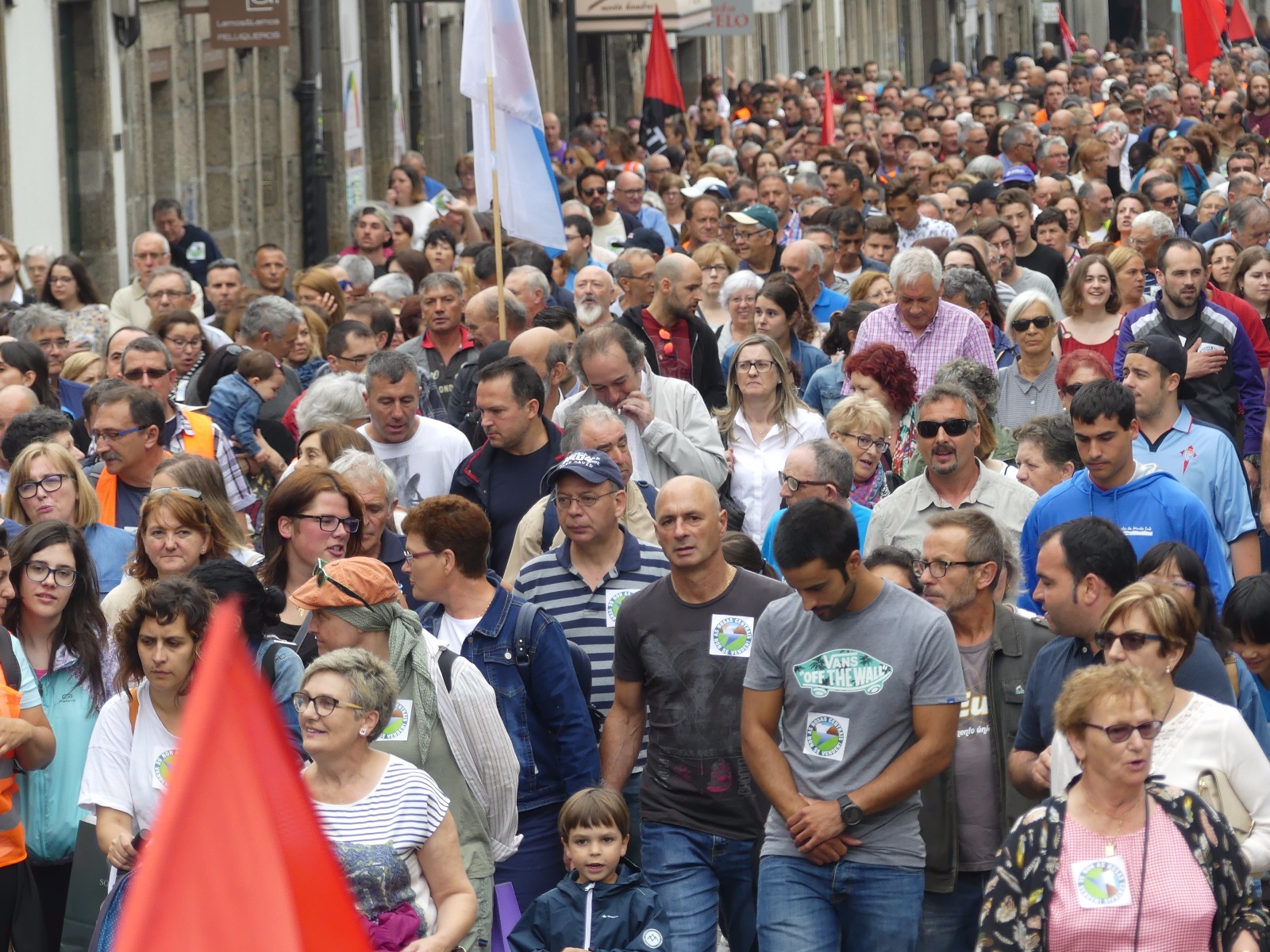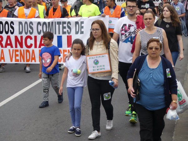 Ao longo do percorrido, ao que se sumaron –en solidariedade coa loita dos/as compañeiros/as de Ferroatlántica- traballadores/as de Sabón, Serrabal e mesmo das industrias propiedade de Villar Mir en Francia (Ferroglobe), foron múltiples as consignas coreadas por familias enteiras. Avoas, nais, fillas, pais e irmáns que marchaban a carón das e dos traballadores de Carburos Metálicos para defender o futuro da comarca. “As centrais non se venden”, proclamaban a viva voz, ou “Aquí está, aquí se ve a Costa da Morte en pé”. Berros de dignidade contra un modelo económico colonial que permite, aínda hoxe, espoliar os nosos recursos naturais e minerais para enriquecer os petos de empresarios como Villar Mir, como ben denunciou, ao longo de todos estes días o secretario xeral da CIG, Paulo Carril e os representantes do comité de empresa.