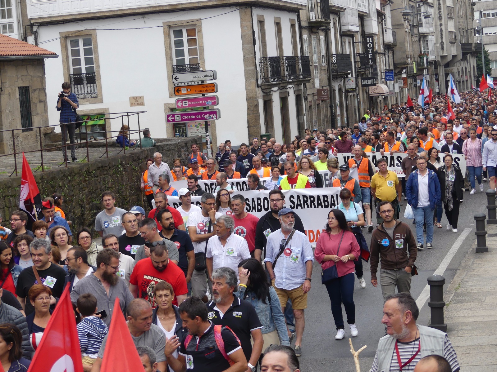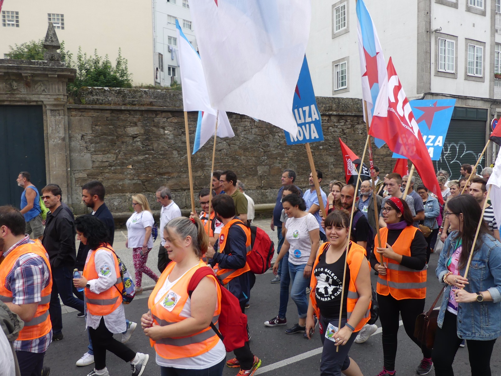 A última etapa da camiñada saía contra as 8:30 horas deste sábado de Bertamiráns e chegaba a Compostela contra as 11:30 horas, onde as e os traballadores que viñan andando foron recibidos, entre aplausos, por compañeiros/as e veciños/as da comarca que xa os agardaban na Alameda. Houbo tempo aínda para facer un pequeno descanso antes de que saíra a manifestación, unha maré que asolagou ao seu paso unha das principais arterias da cidade até chegar ao edificio administrativo da Xunta de Galiza, en San Caetano.