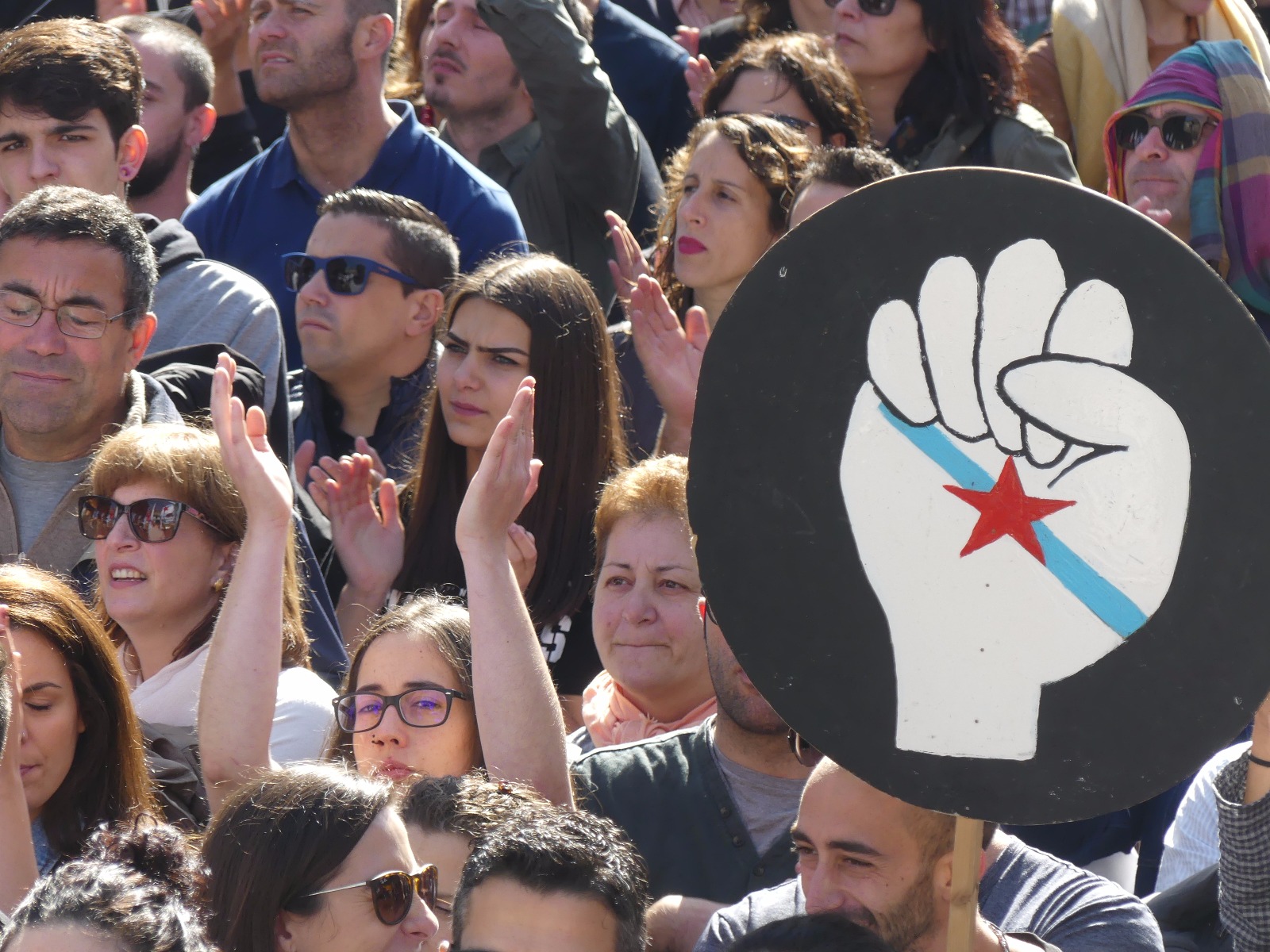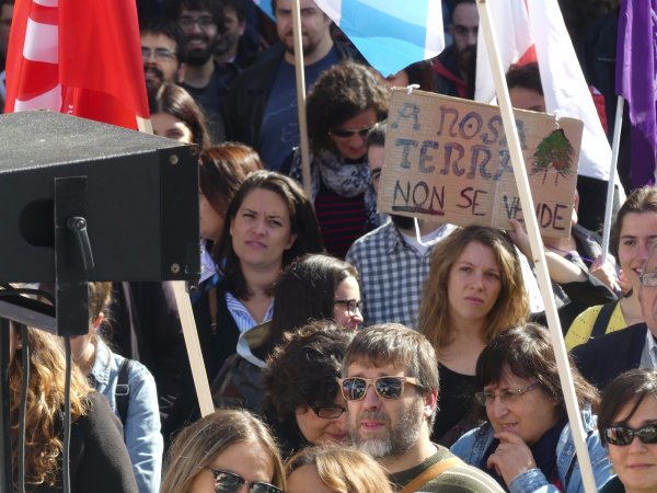 “Cando escriben “Galicia” pensan “negocio”. Cando cidadanía, consellos de administración. Cando pechan unha porta, abren unha fiestra na gran empresa privada. Porque o cargo de hoxe pode ser o posto de mañá. Porque queren a Galiza coma unha mina, deprédannos. Mais aquí estamos. Se cadra nós, non tan minoría. Se cadra a maioría non tan absoluta fóra dos seus muros. Non imos entregarlles a palabra, nin a terra. Porque só se compra o que se vende, pero a nosa resistencia é a negación do voso afán. É a vosa pequena derrota diaria. Mentres sigamos aquí, a non traficar o futuro”.