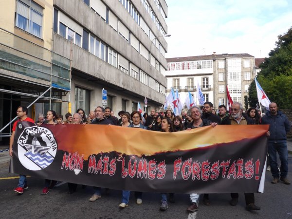 Unha catástrofe da que as organizacións convocantes desta enorme mobilización responsabilizaron “as políticas de abandono do rural propiciada polo Partido Popular e a política forestal de eucaliptización promovida desde a Xunta de Galiza, condicionada polos intereses empresariais da pasteira ENCE”. Xunto a isto denunciaron a ausencia de políticas de prevención que manteñan os nosos montes limpos e a falta de previsión diante dunhas condicións climatolóxicas que se sabía desde hai xa varios días que eran as peores para a propagación de lumes: vento, seca e altas temperaturas. Ao que se lle sumou o desmantelamento dos medios cos que as brigadas de SEAGA poideran facer fronte ao lume.