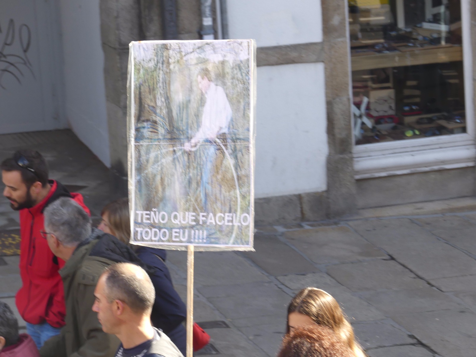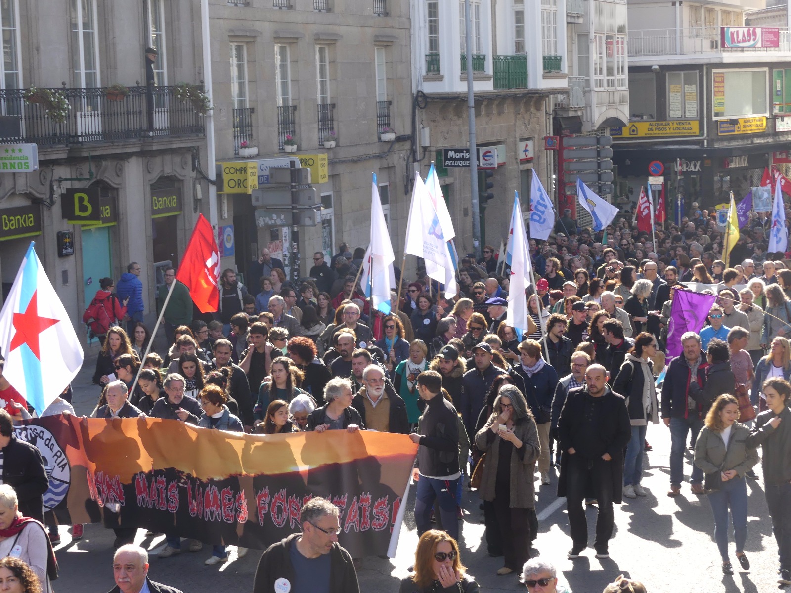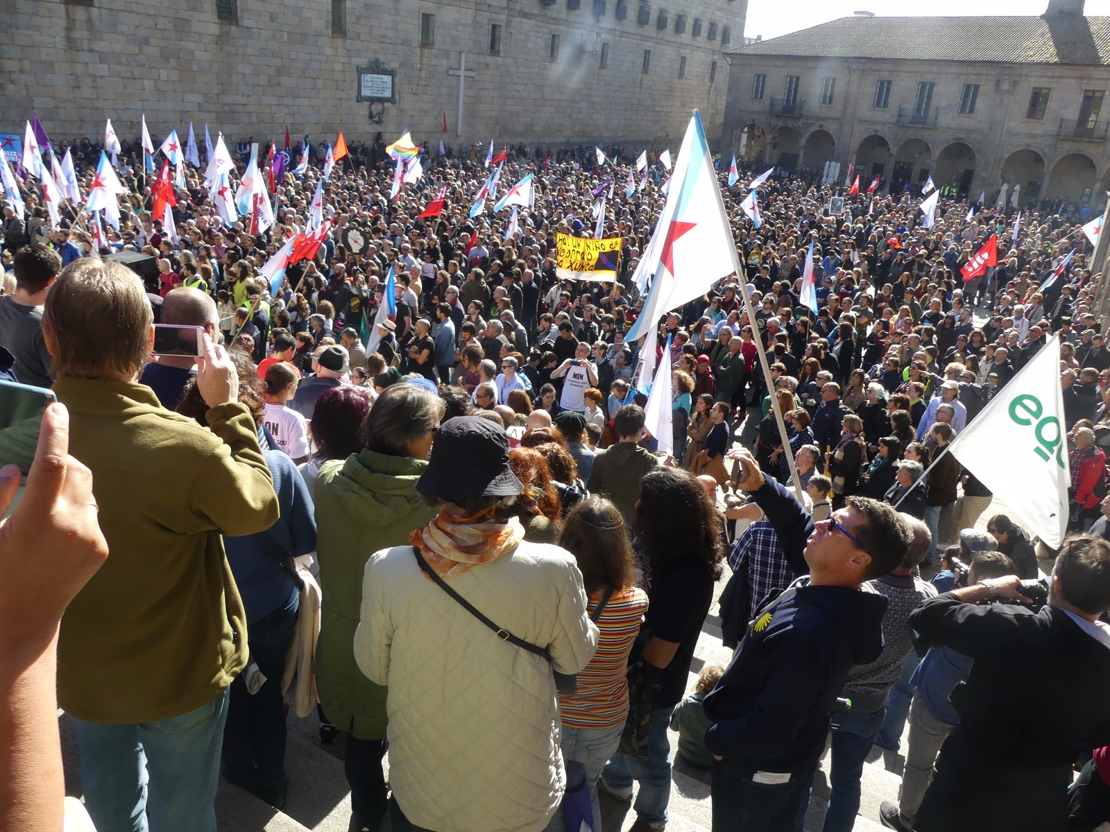 Arredor de 15.000 persoas percorreron esta mañá as rúas de Compostela para manifestar a súa indignación diante da falta de previsión e nefasta xestión do goberno do Partido Popular durante a catastrófica vaga de lumes que arrasou Galiza o pasado fin de semana. Ao berro de “Nunca Máis” se lle sumou o de “Feijoo dimisión” mais tamén consignas contra a Lei de Fomento Empresarial, alcumada como “Lei de Depredación de Galiza”, que ademais de permitir a espoliación dos nosos recursos, favorecerá unha maior eucaliptización do noso país.