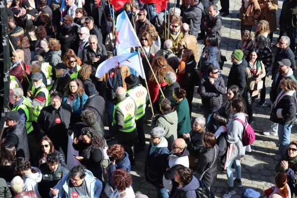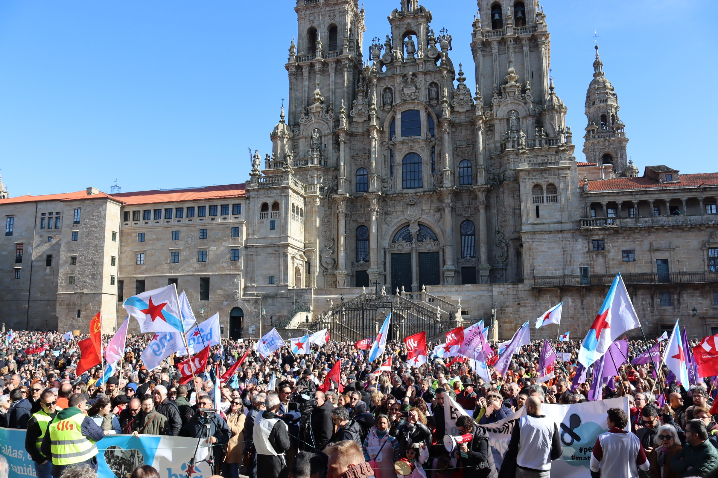 A praza do Obradoiro quedou pequena para acoller ás miles de persoas chegadas de toda Galiza para defender a sanidade pública e reclamar unha atención primaria digna. Homes e mulleres que conforman a morea de plataformas locais de SOS Sanidade Pública que se foron creando en cidades e vilas; familias ao completo para demandar desde atención pediátrica para as crianzas, até médicas e médicos abondo nos centros de saúde para que se reduzan as esperas para ter unha cita; veciños e veciñas que exixiron recuperar os seus centros de saúde e persoal para denunciar a saturación e a falta de tempo e medios para garantir unha atención digna.