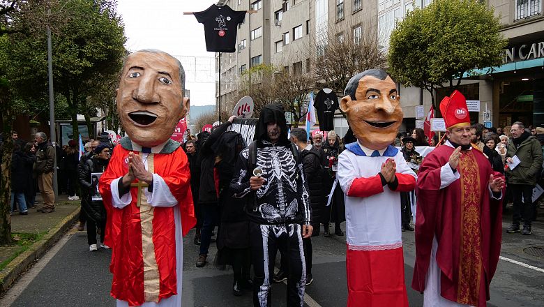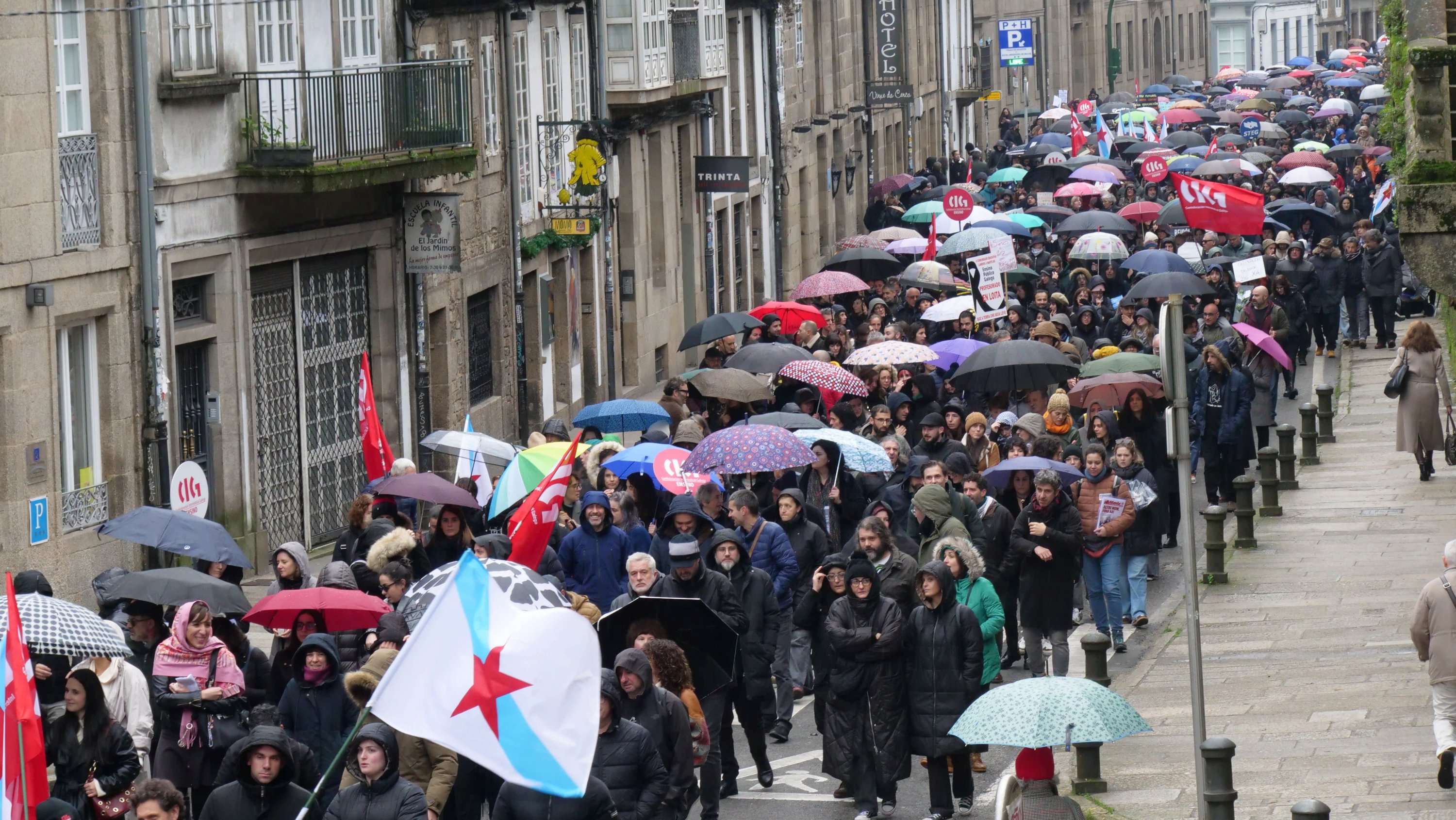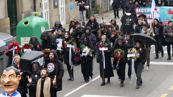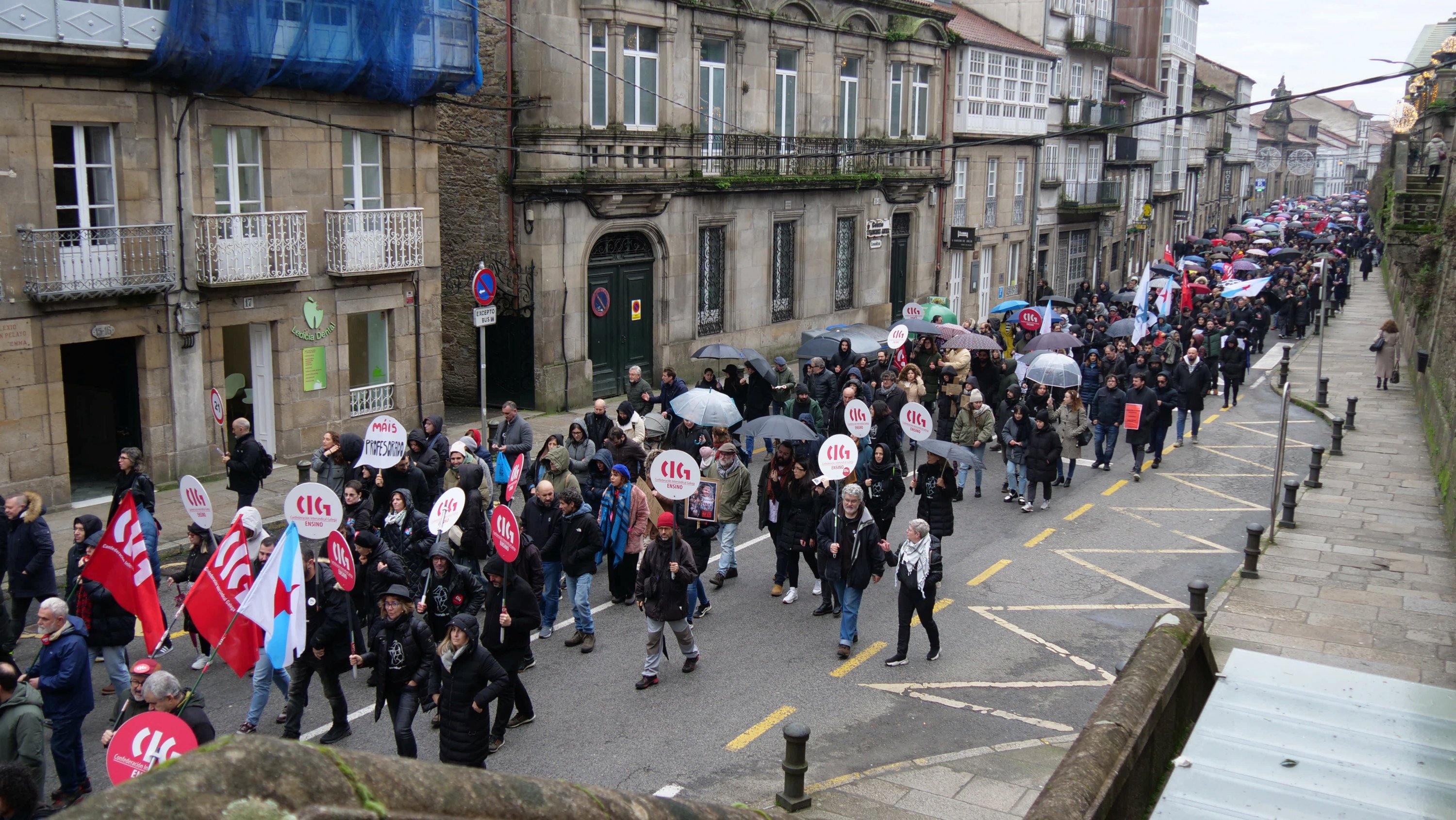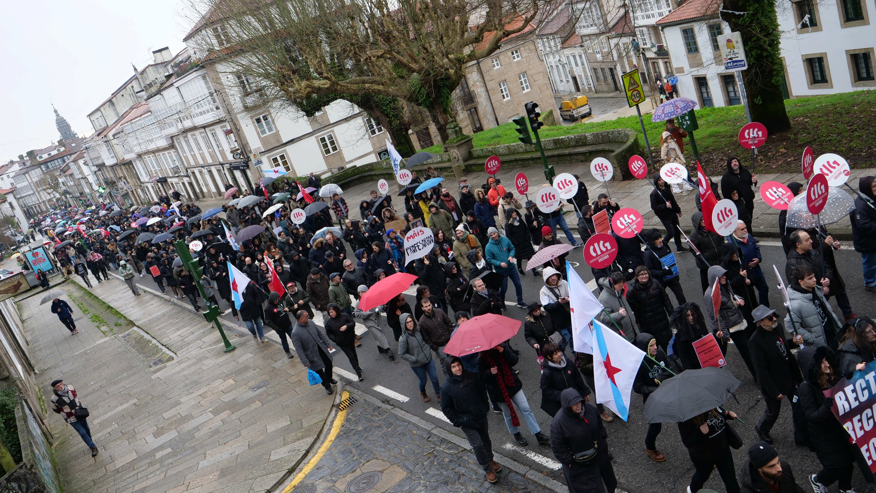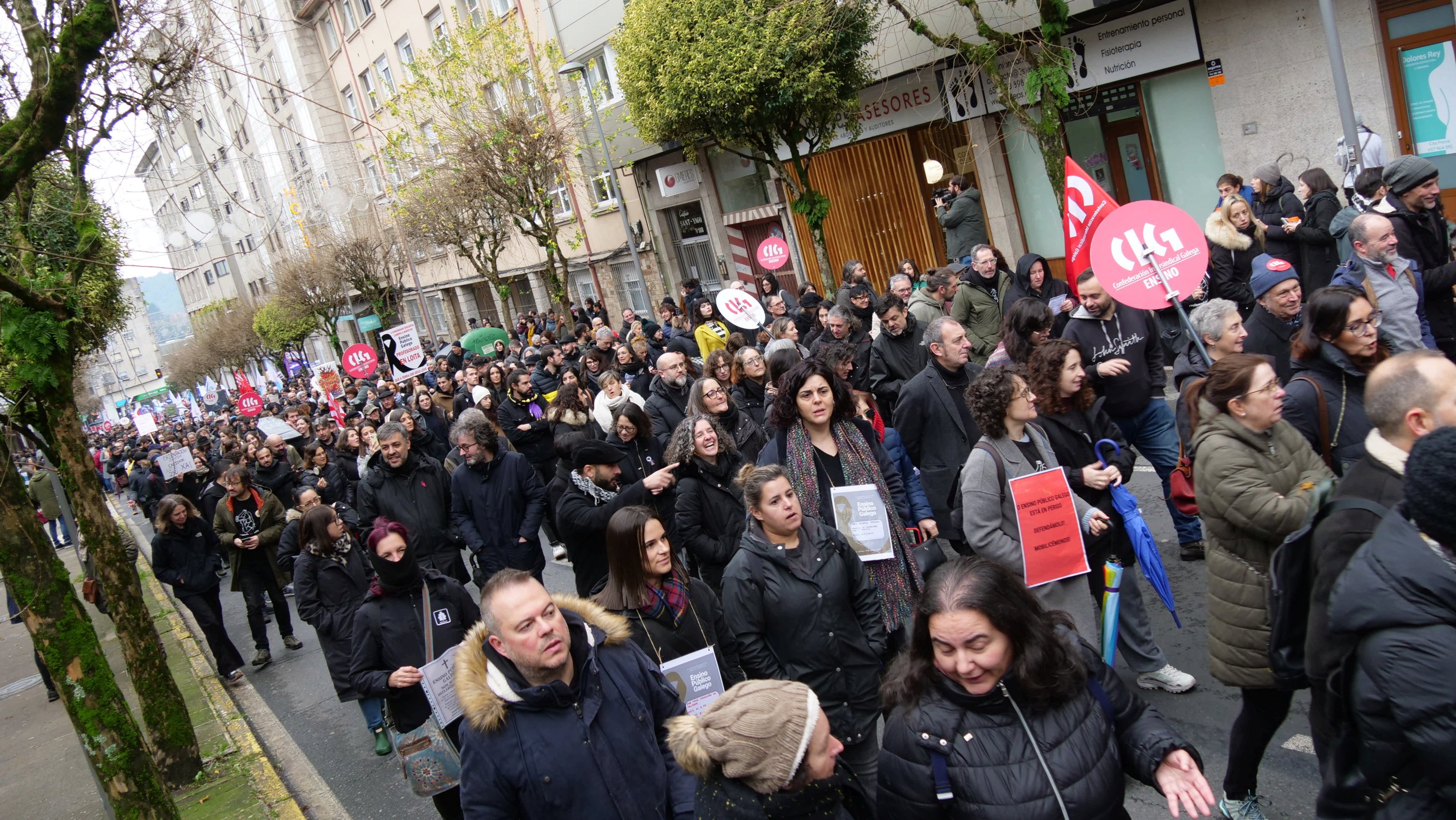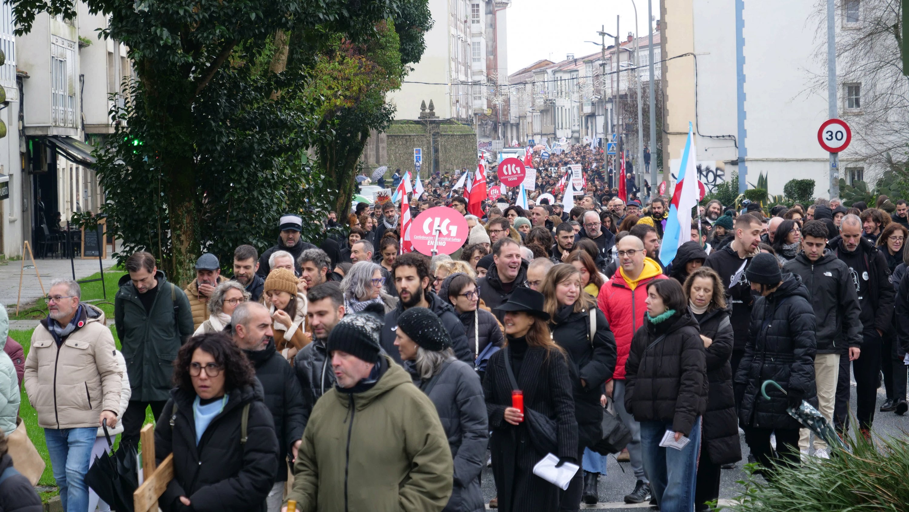 Milleiros de docentes escenificaron este mércores o enterro do ensino público galego cunha manifestación que partiu do Parlamento e rematou no complexo administrativo da Xunta en San Caetano. No que xa é o quinto día de folga dende que deu comezo o curso 2025-2026, as organizacións convocantes quixeron lanzar mensaxes en positivo polo conseguido nestes tres meses de intensa mobilización que fixeron reaccionar a Consellaría. Pois, malia negarse a negociar coa maioría sindical, Educación anunciou que adiantará a negociación da baixada de ratios en secundaria e que o vindeiro curso haberá novidades a respecto da recuperación do horario lectivo.