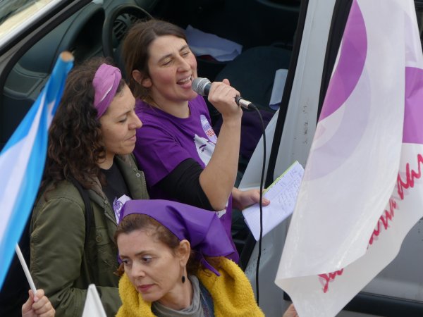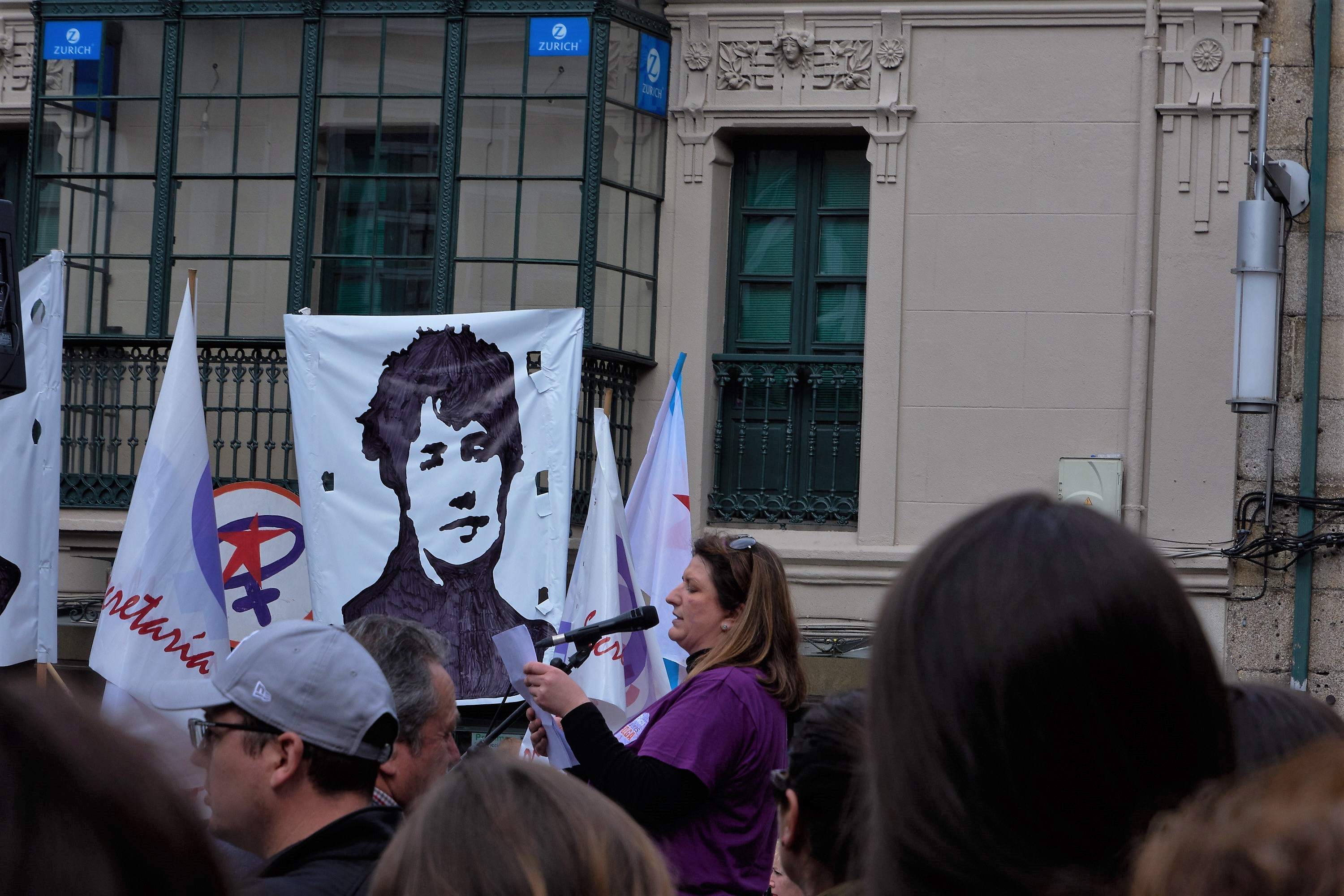 Neste punto, Corral lembrou a figura de Rosalía de Castro ("unha galega adiantada a súa época que deu palabra a denuncias aínda hoxe plenamente vixentes") e reivindicou as revoltas e mobilizacións de mulleres que hai máis de cen anos percorrían o país de Oseira a Nebra, de Narón a Sofán e Sobredo; dos motíns de subsistencia e os tumultos convocados o século pasado na Galiza por mulleres contra a suba de prezos nos alimentos e produtos básicos; das labregas enfrontadas aos caciques e á garda civil, "neses mitins e manifestacións de mulleres das clases populares do país, que percorreron as rúas galegas, loitas tantas veces esquecidas, neste país colonizado, e que deben ser todo un referente de autoorganización e de loita polos nosos dereitos, elas son as que comezaron a loita que agora seguimos".