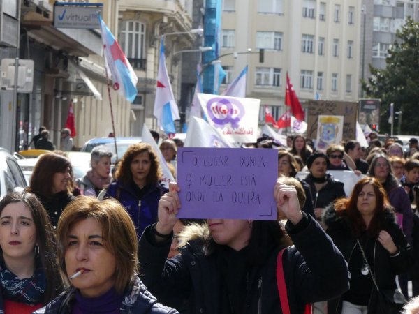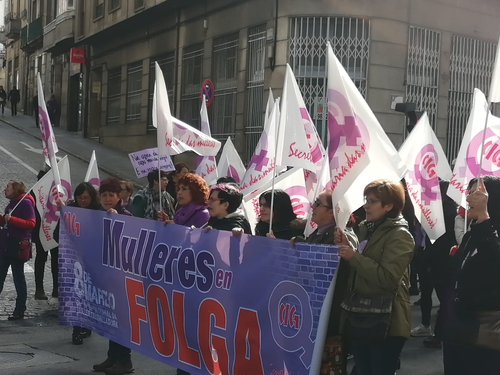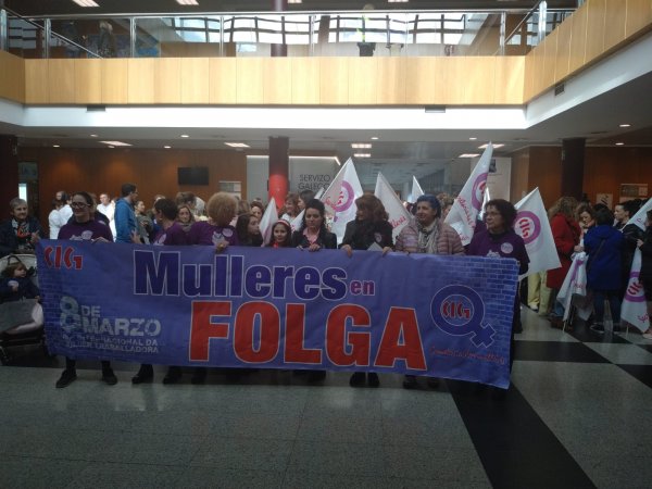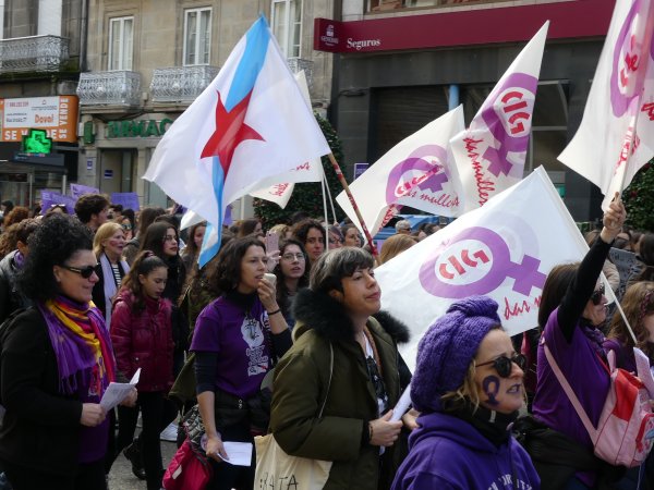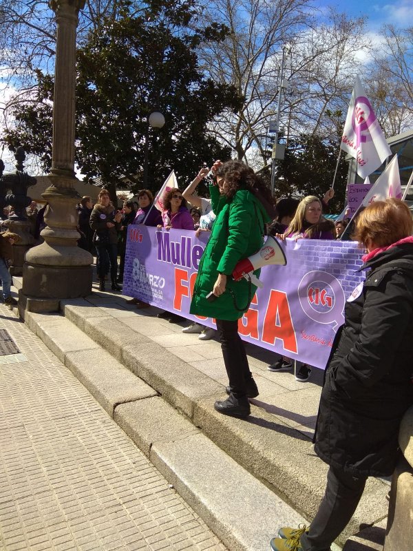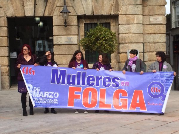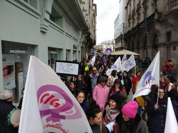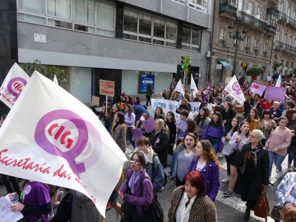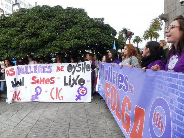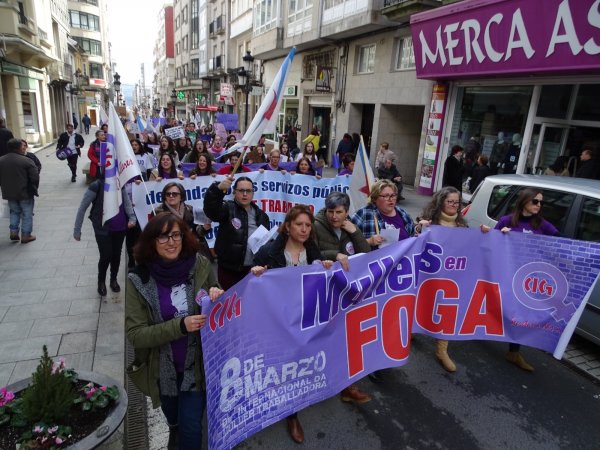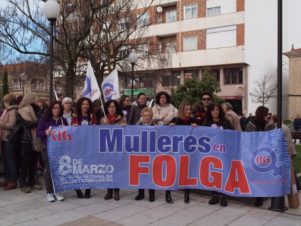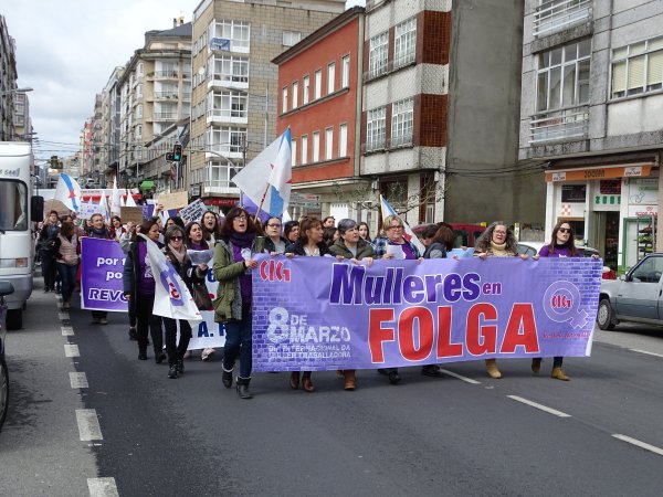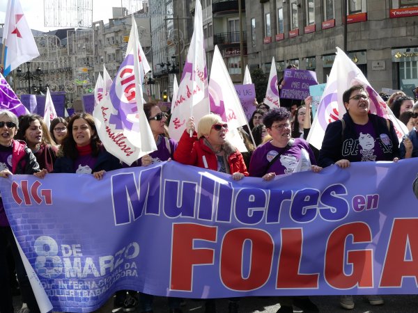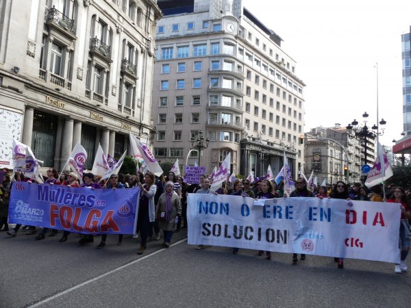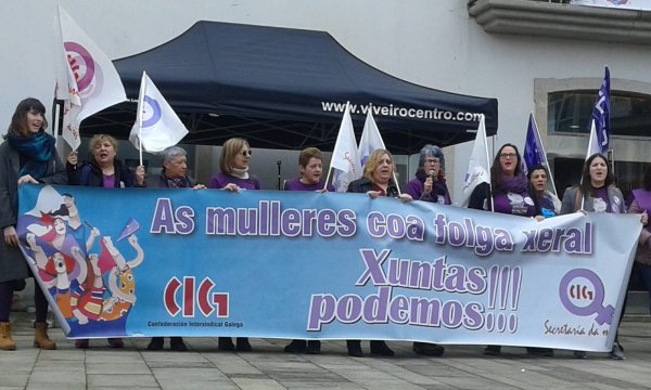 Galiza enteira treme: da Mariña ao Morrazo, da Costa da Morte a Valdeorras, de Ferrolterra a Compostela, de Lugo a Ourense, do Salnés a Betanzos, da Coruña a Vigo... miles de mulleres traballadoras da sanidade, do ensino, do comercio, da industria, dos centros de chamadas, da administración, do téxtil, do mar, das conserveiras,... saíron hoxe coa CIG á rúa no marco da xornada de folga laboral; mais tamén o fixeron as xubiladas, as estudantes, as desempregadas, as mulleres que traballan arreo pero non teñen unha remuneración "para denunciar a inxustiza que supón discriminar a máis da metade da sociedade pole mero feito de sermos mulleres".