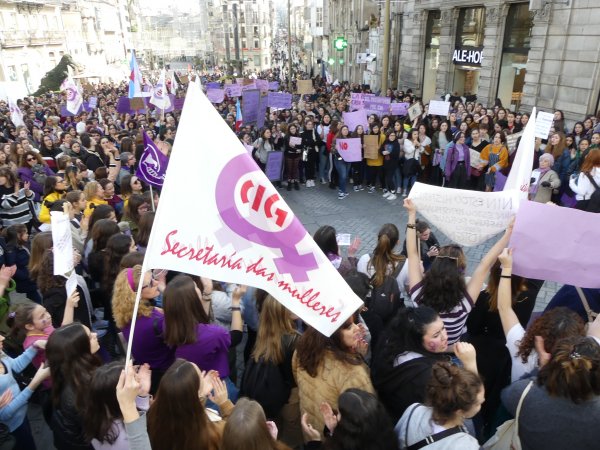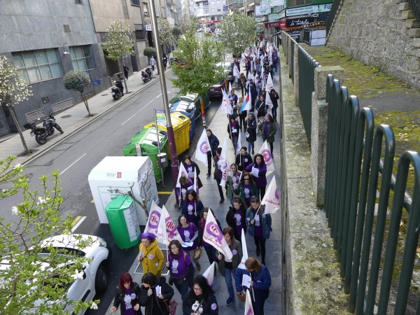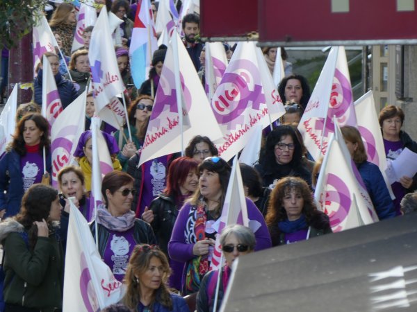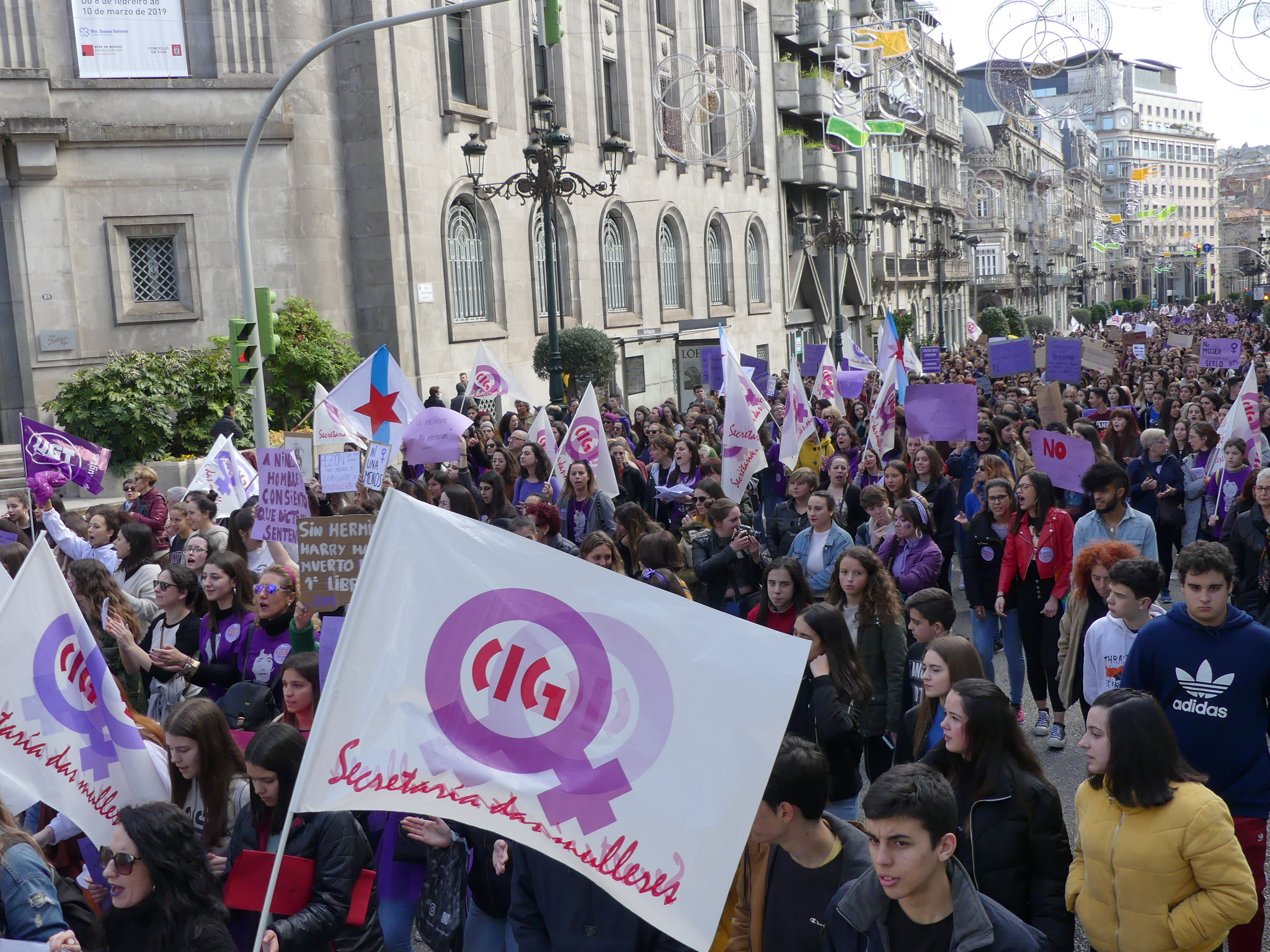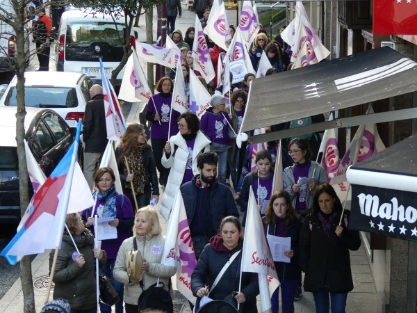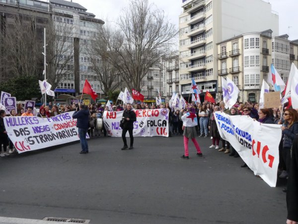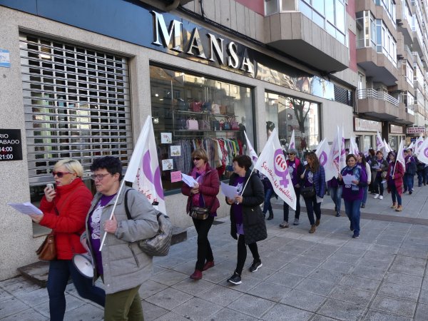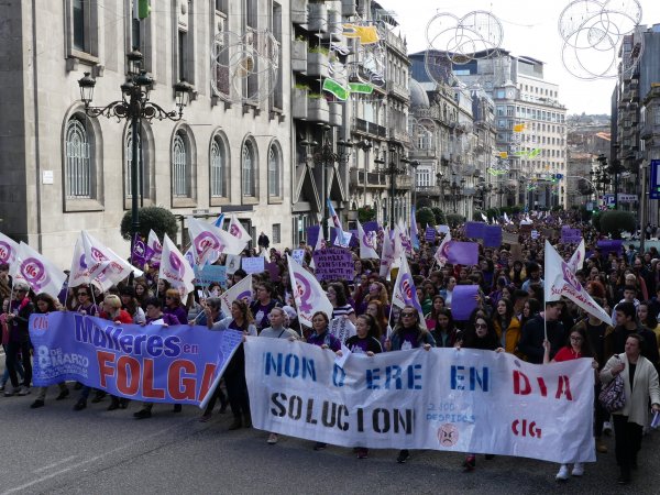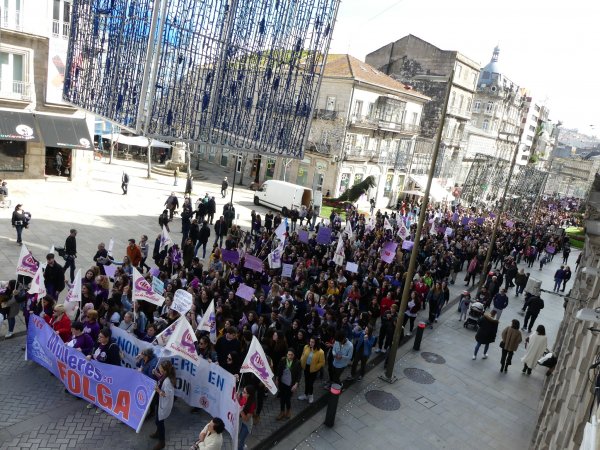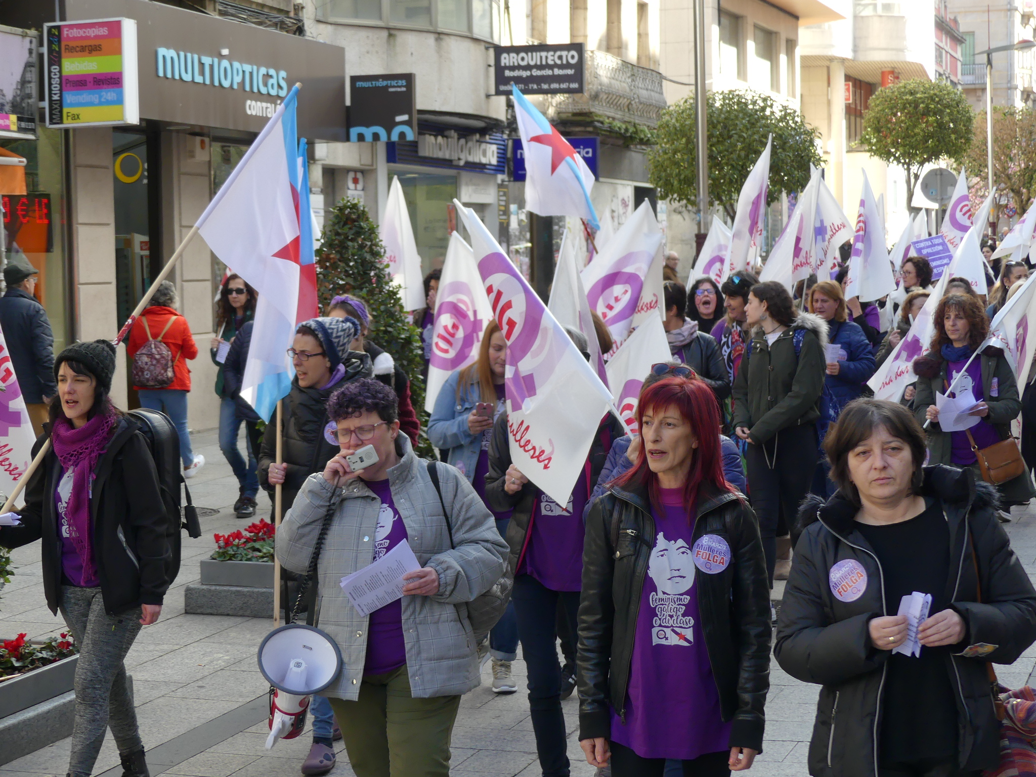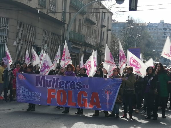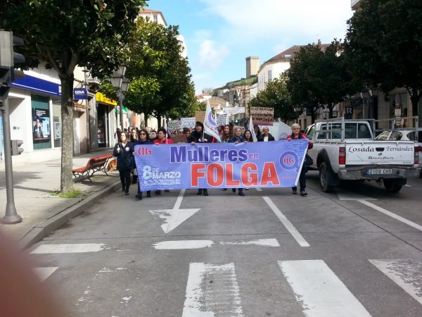 Galiza enteira treme: da Mariña ao Morrazo, da Costa da Morte a Valdeorras, de Ferrolterra a Compostela, de Lugo a Ourense, do Salnés a Betanzos, da Coruña a Vigo... miles de mulleres traballadoras da sanidade, do ensino, do comercio, da industria, dos centros de chamadas, da administración, do téxtil, do mar, das conserveiras,... saíron hoxe coa CIG á rúa no marco da xornada de folga laboral; mais tamén o fixeron as xubiladas, as estudantes, as desempregadas, as mulleres que traballan arreo pero non teñen unha remuneración "para denunciar a inxustiza que supón discriminar a máis da metade da sociedade pole mero feito de sermos mulleres".