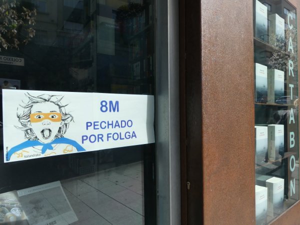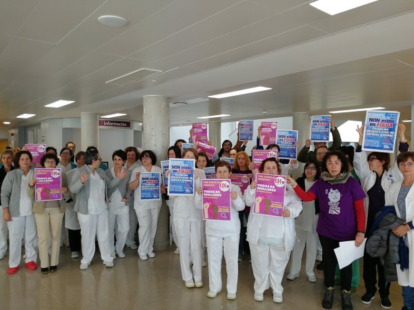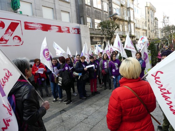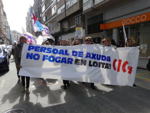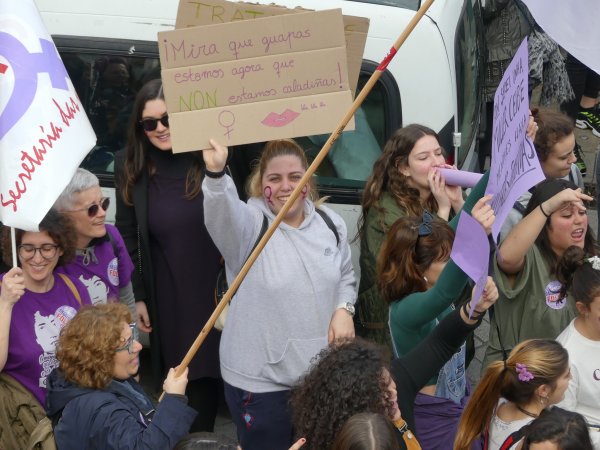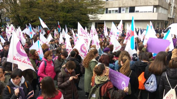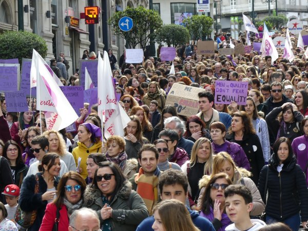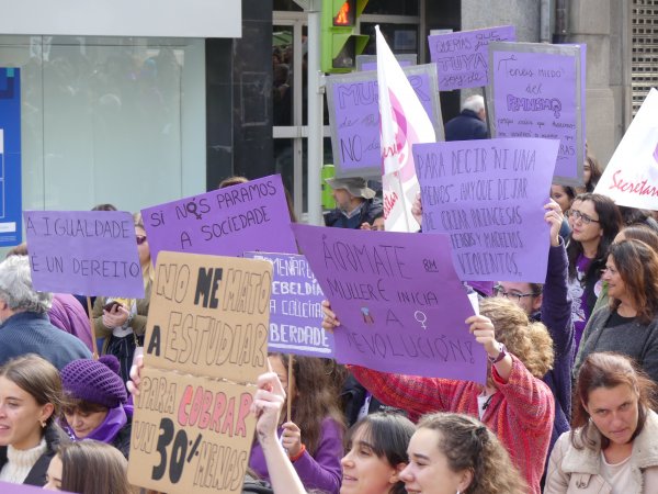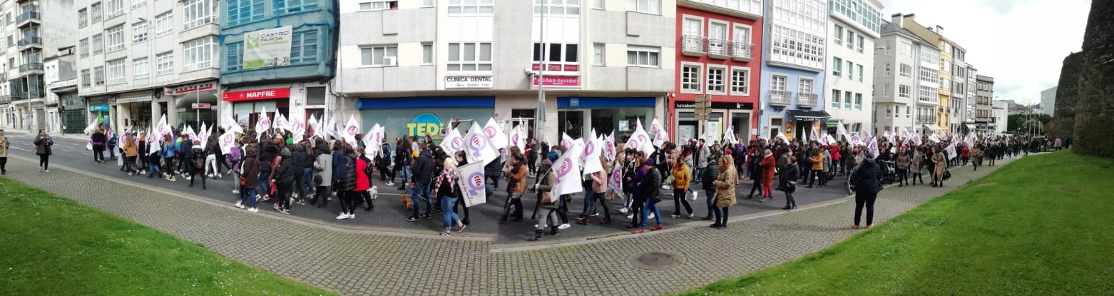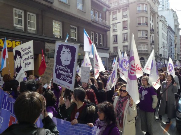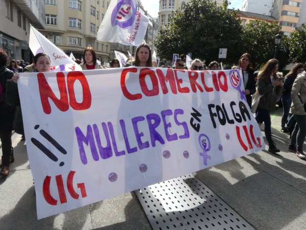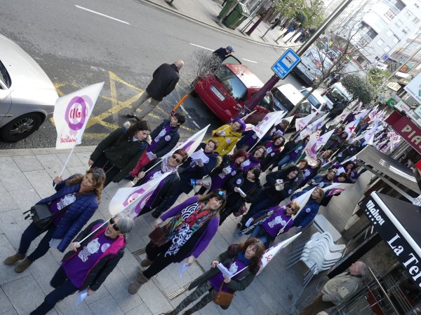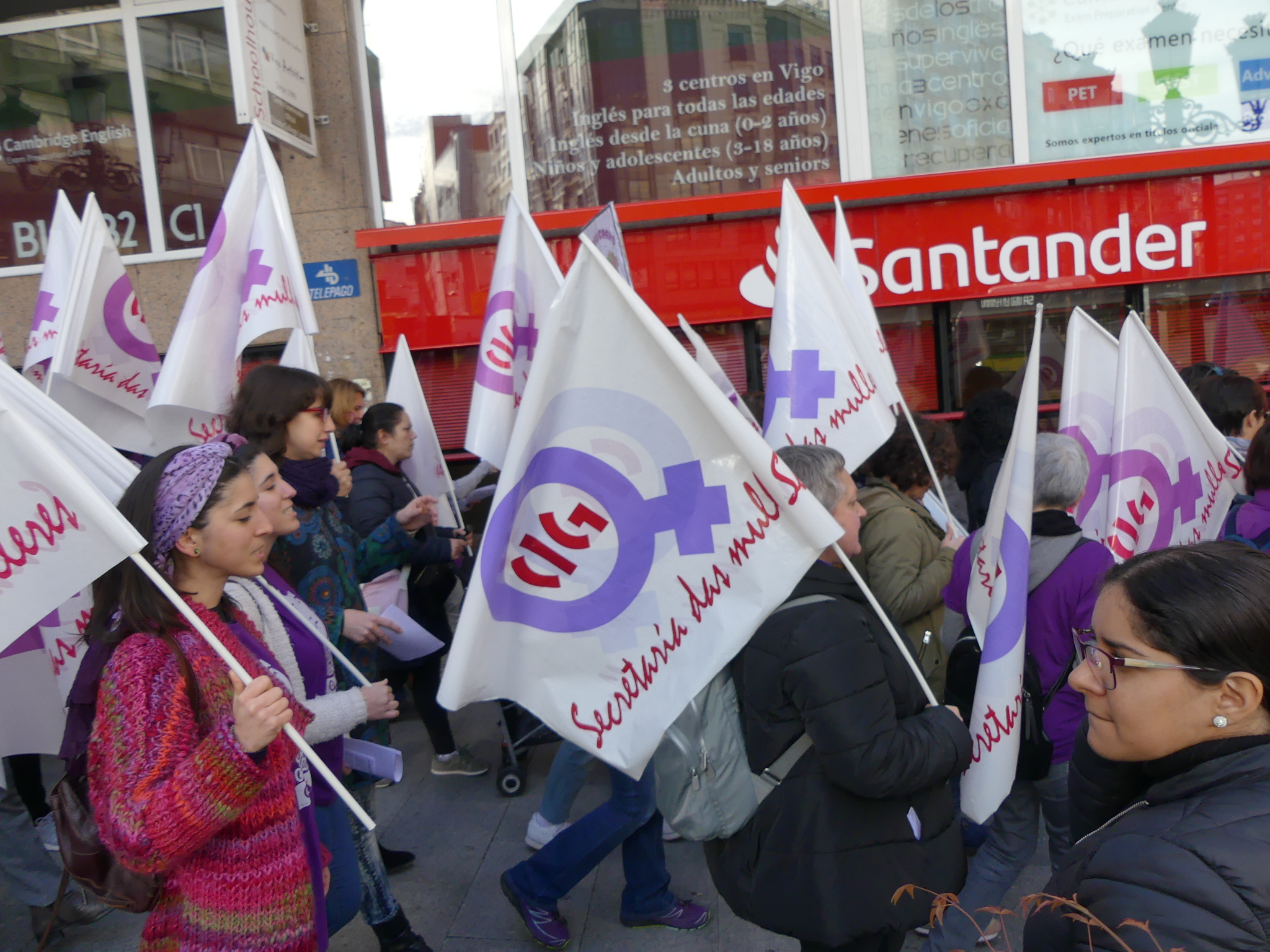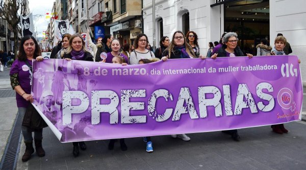 Galiza enteira treme: da Mariña ao Morrazo, da Costa da Morte a Valdeorras, de Ferrolterra a Compostela, de Lugo a Ourense, do Salnés a Betanzos, da Coruña a Vigo... miles de mulleres traballadoras da sanidade, do ensino, do comercio, da industria, dos centros de chamadas, da administración, do téxtil, do mar, das conserveiras,... saíron hoxe coa CIG á rúa no marco da xornada de folga laboral; mais tamén o fixeron as xubiladas, as estudantes, as desempregadas, as mulleres que traballan arreo pero non teñen unha remuneración "para denunciar a inxustiza que supón discriminar a máis da metade da sociedade pole mero feito de sermos mulleres".