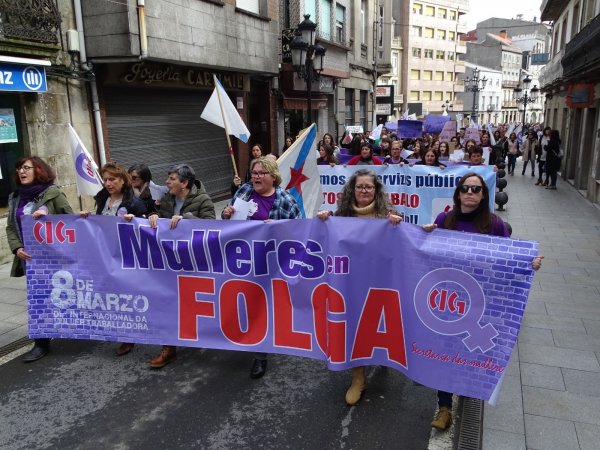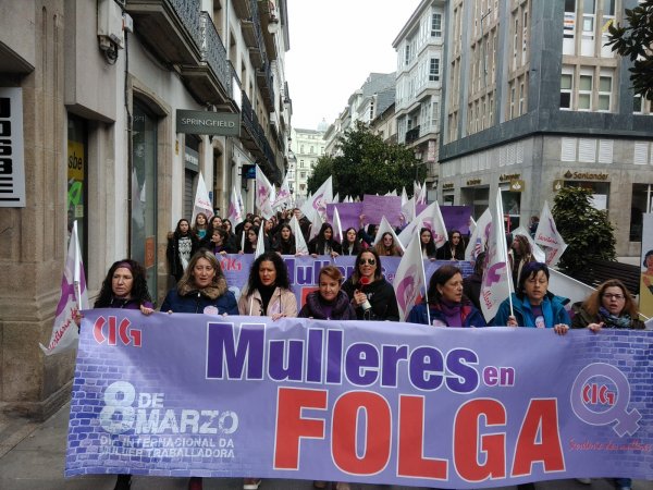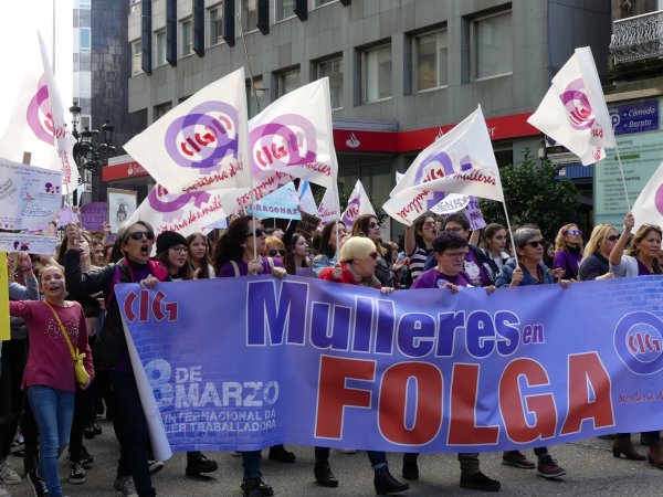 Miles de galegas están a secundar a folga e as preto de 30 mobilizacións convocadas pola CIG ao longo de toda Galiza neste 8 de Marzo, para reclamar a igualdade de oportunidades nas condicións de traballo, na esfera social e o dereito a vivir sen violencia. No Día Internacional da Muller Traballadora, as galegas toman as rúas de novo, reivindicando a orixe obreira e revolucionaria desta data, "para que dunha vez por todas o poder entenda que as mulleres estamos fartas da desigualdade e das agresións que sufrimos e porque non imos permitir que nos fagan retroceder nos nosos dereitos cando aínda nos quedan moitos por conquistar".