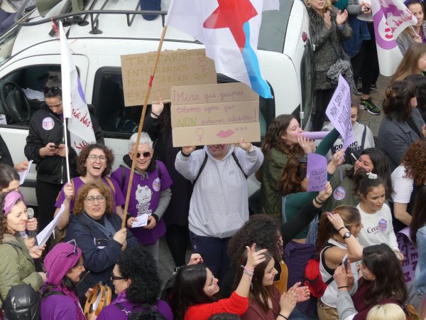 Mais tamén sufrimos de xeito maioritario os efectos dos recortes no estado de benestar, os coidados seguen fóra do centro das políticas e son asumidos de xeito maioritario polas mulleres, que tamén son as que en maior medida traballan na economía somerxida, nos traballos invisíbeis e non remunerados. "Todas estas son razóns de abondo para saír hoxe e todos os días do ano á rúa, para esixir medidas reais e efectivas para rematar coas discriminacións, os acoso na rúa, na casa, no lugar de traballo, as agresións, as violacións e que nos asasinen polo mero feito de sermos mulleres".