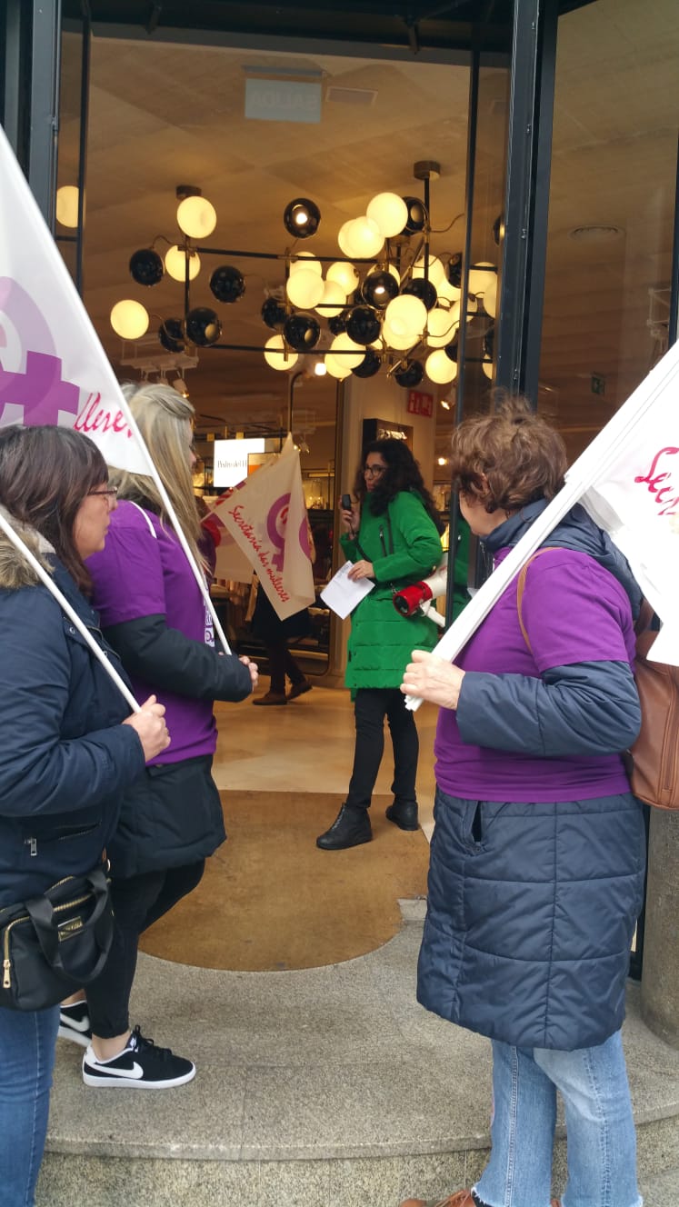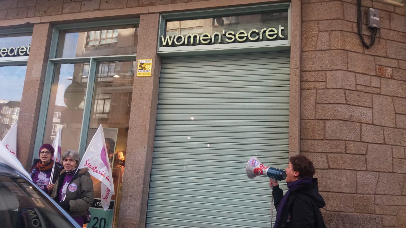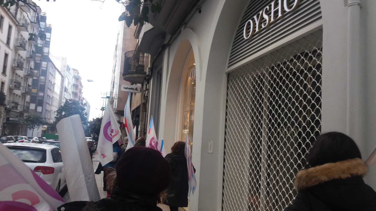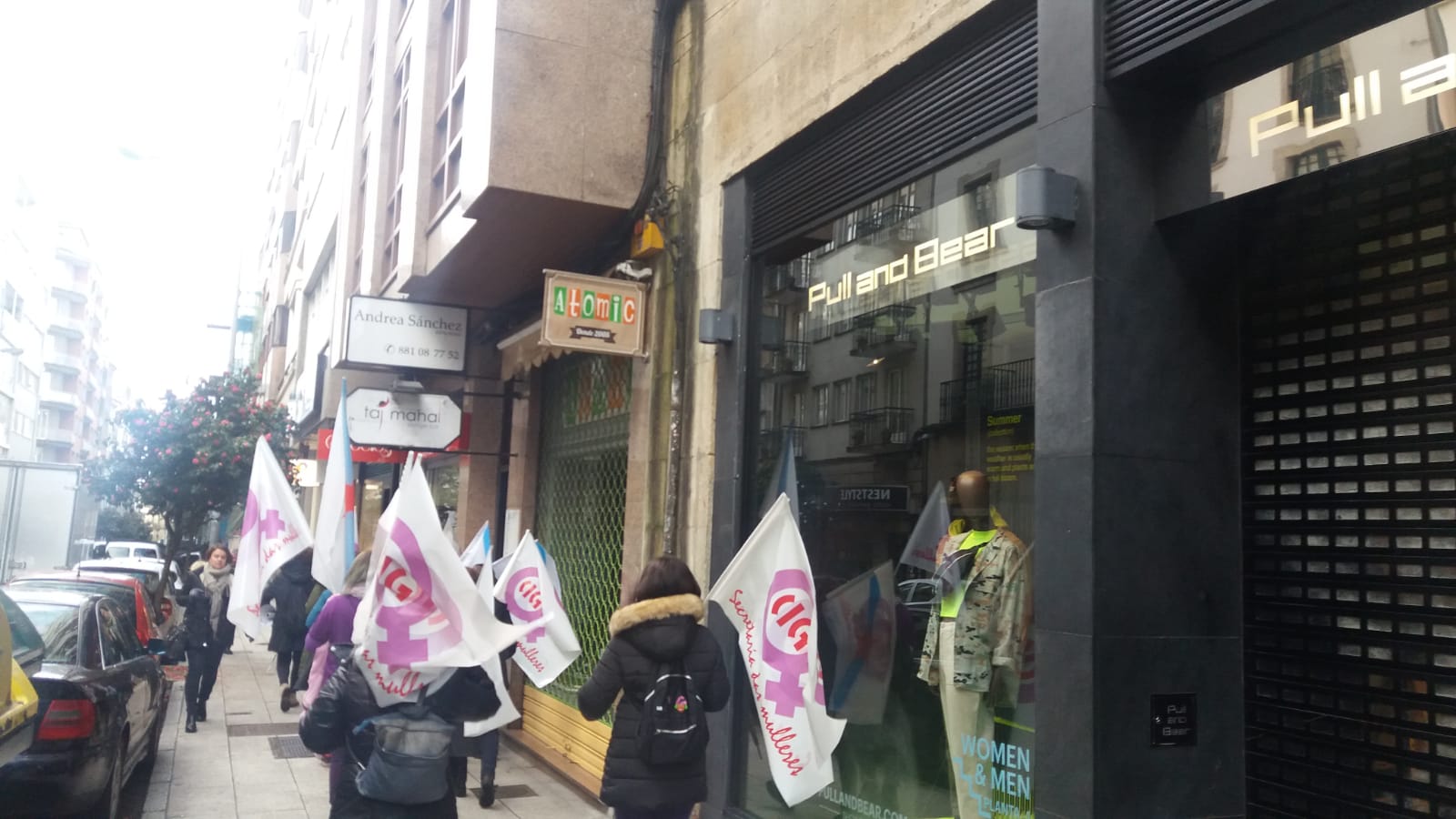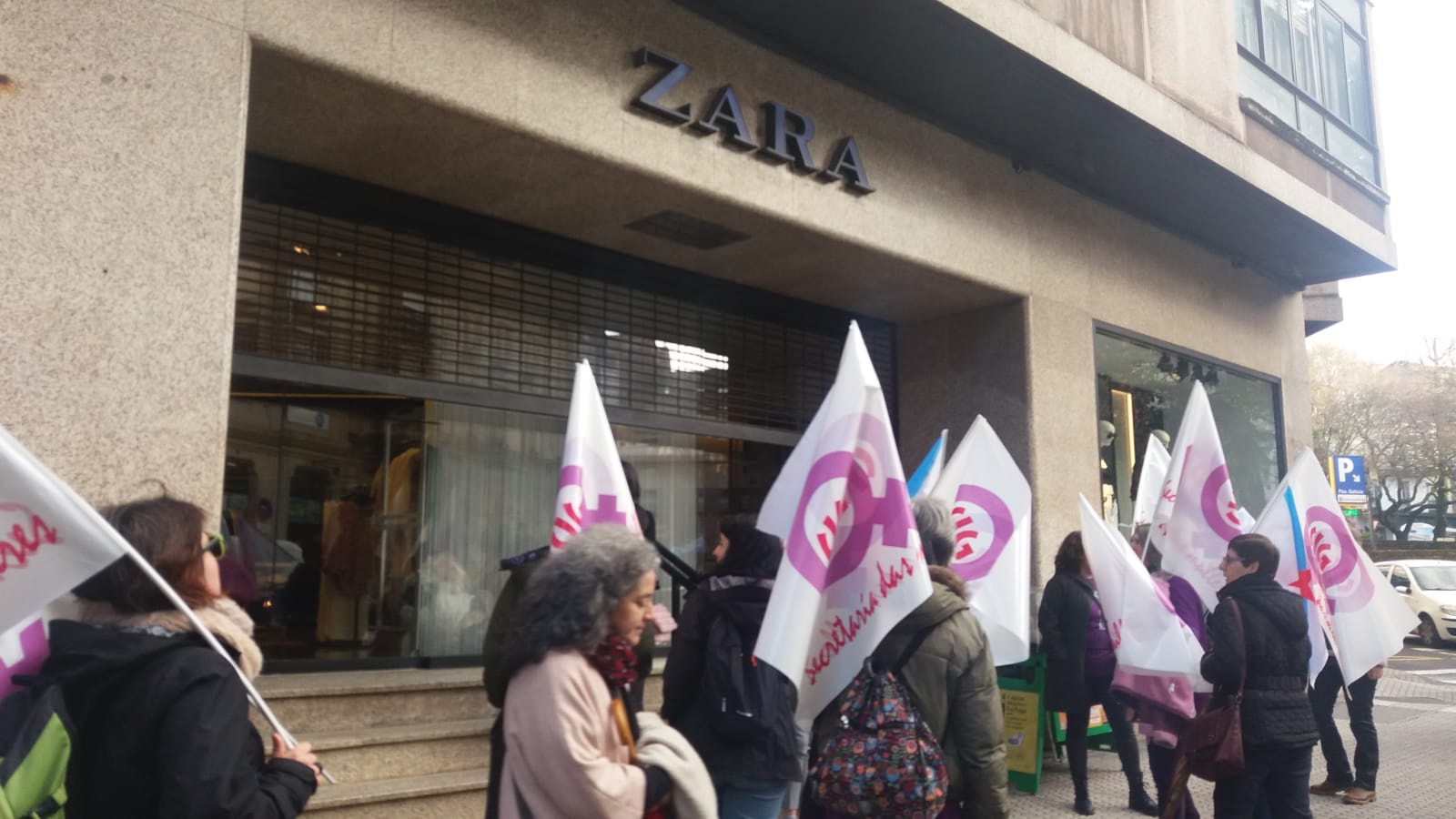Na comarca de Compostela, a folga déixase sentir a esta hora no sector servizos, onde máis do 60% das traballadoras das tendas Inditex (Zara, Bershka, Stradivarius, Oysho, Lefties, Zara Home…) do centro comercial As Cancelas están secundando a folga. De igual xeito as compañeiras das tendas Oysho e Stradivariuss do centro da cidade están en folga.