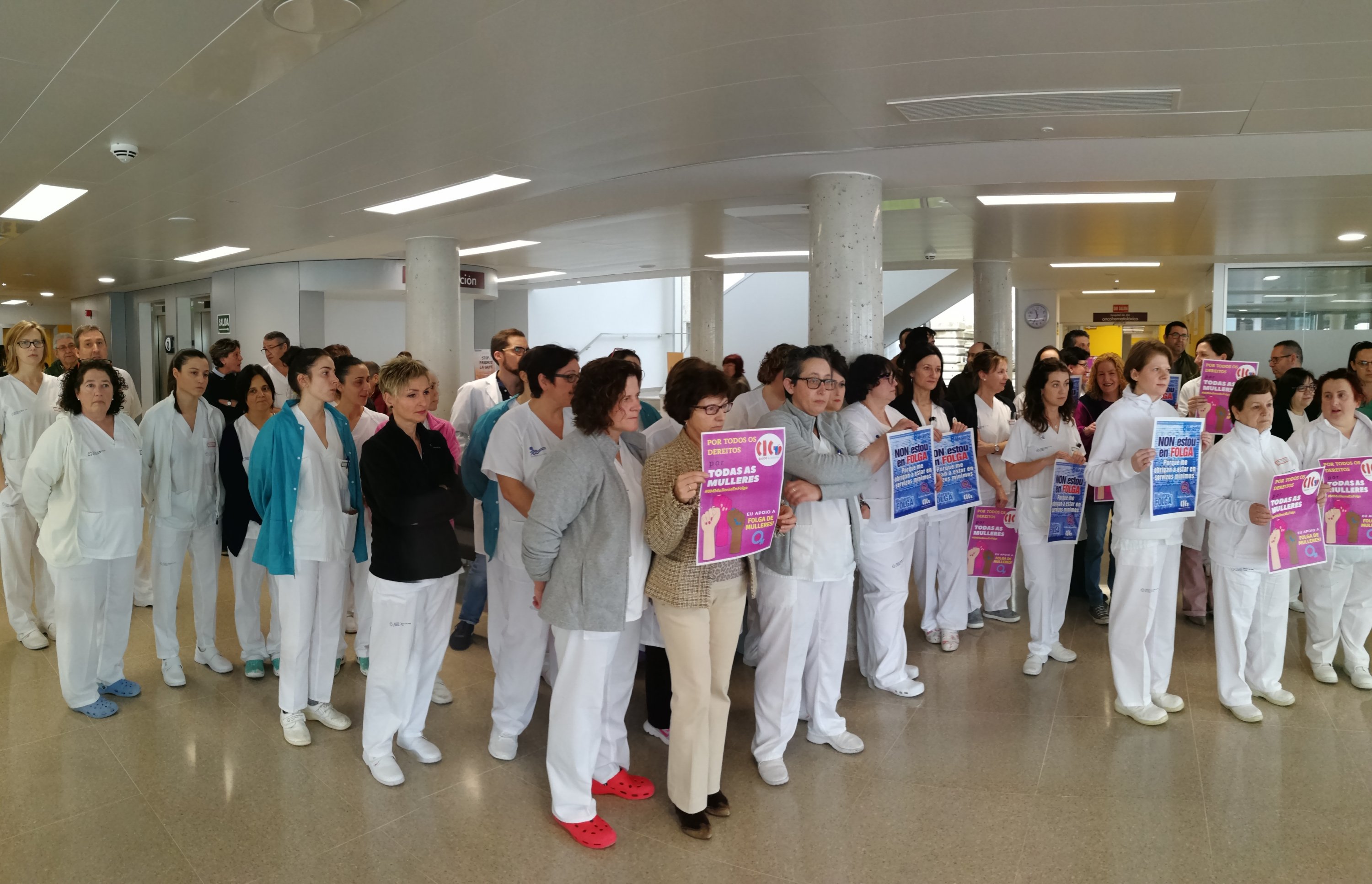 No hospital Clínico, alén do seguimento entre o persoal sanitario, o 100% das traballadoras da cafetería non acudiron aos seus postos. E pararon tamén compañeiras do concesionario de Toyota, de Intelsis e de Senande. Ademais en empresas como Indra, o seguimento foi do 50%; en Feafes do 75% e en Dinahosting do 60%.