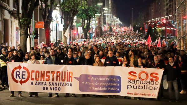 Máis de 60.000 persoas ateigaron onte as rúas de Vigo para esixir a “reconstrución” da área sanitaria para garantir a calidade asistencial fronte á política de recortes da Xunta de Galiza. Coa mobilización convocada pola plataforma SOS Sanidade Pública demándase tamén a depuración de responsabilidades polo sobrecusto de máis de 470 millóns de euros na construción do hospital Álvaro Cunqueiro, tal e como recolle un informe do Consello de Contas.