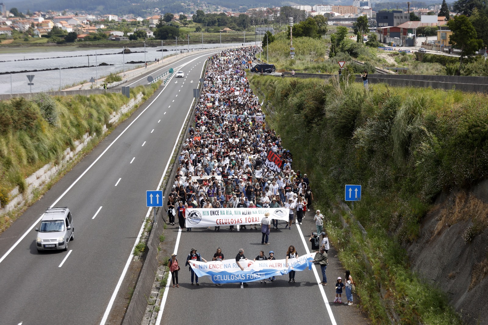 Varios milleiros de persoas convocadas pola Asociación Pola Defensa da Ría (APDR) xunto á Plataforma por unha Ulloa Viva e a Plataforma en Defensa da Ría de Arousa (Pedra) marcharon hoxe a pé dende as alamedas de Pontevedra e Marín para rexeitar tanto a presenza da pasteira Ence como a instalación da macrocelulosa proxectada pola empresa Altri na comarca da Ulloa.