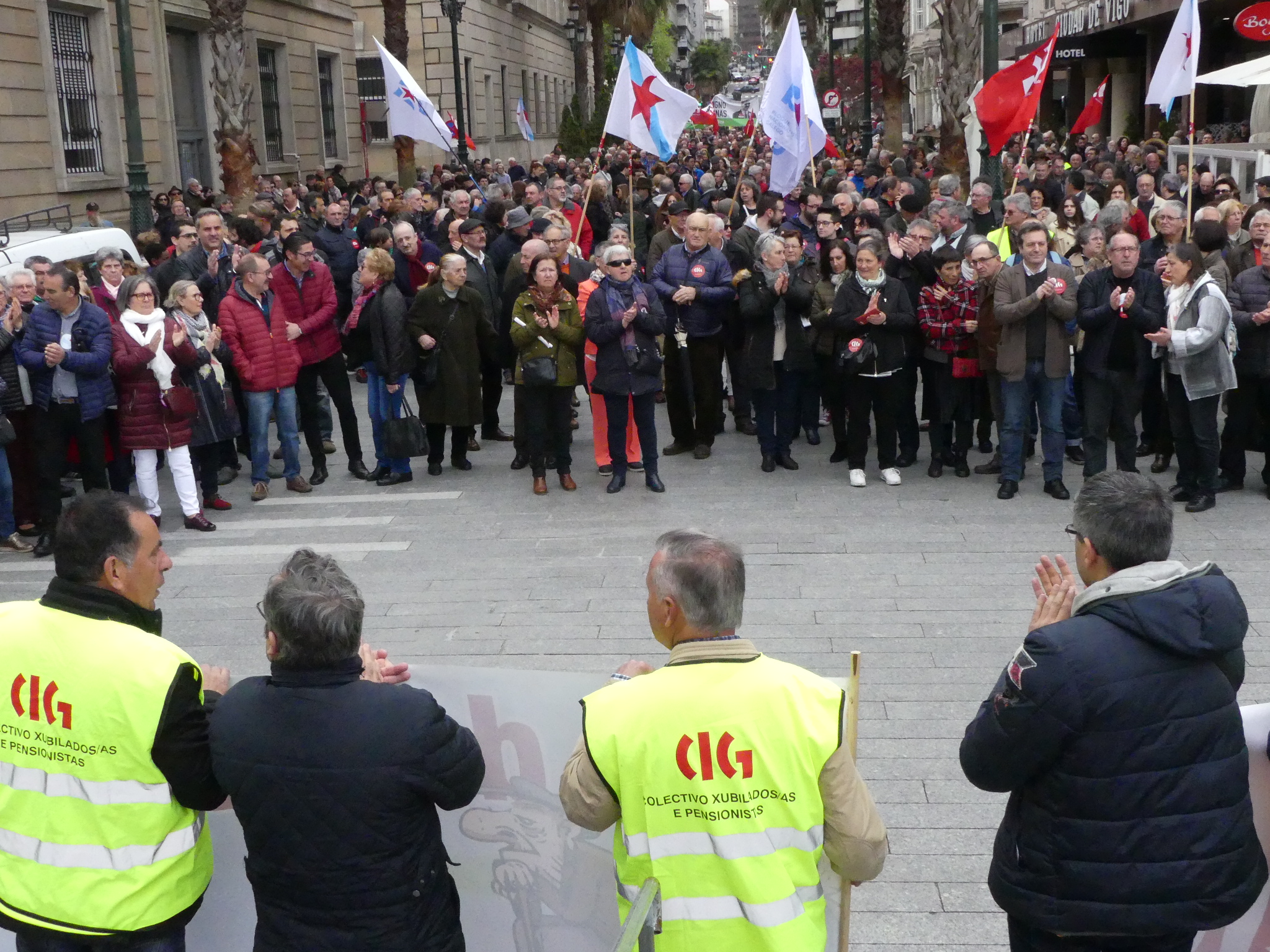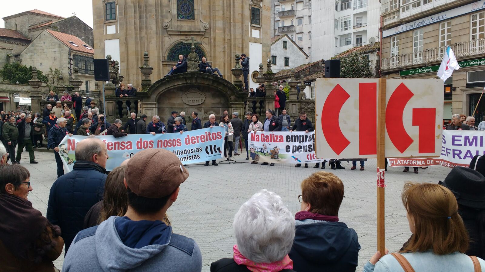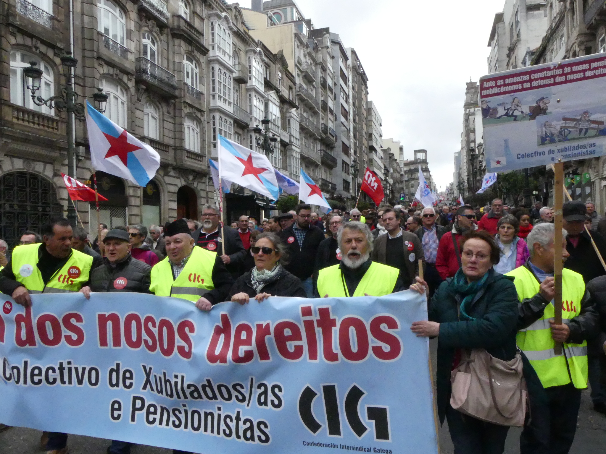 Milleiros de persoas mobilizáronse coa CIG este domingo nas 23 manifestacións e concentracións convocadas pola central sindical ao longo de todo o país en defensa do sistema público de pensións e para esixir a recuperación dos dereitos laborais e sociais roubados baixo o pretexto da crise económica. Unha recuperación que pasa pola derrogación das reformas das pensións, laborais e da negociación colectiva, como única alternativa para frear a pobreza e a precariedade que está xeneralizándose e asentándose de maneira alarmante.