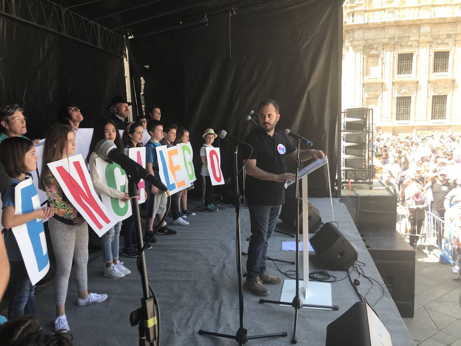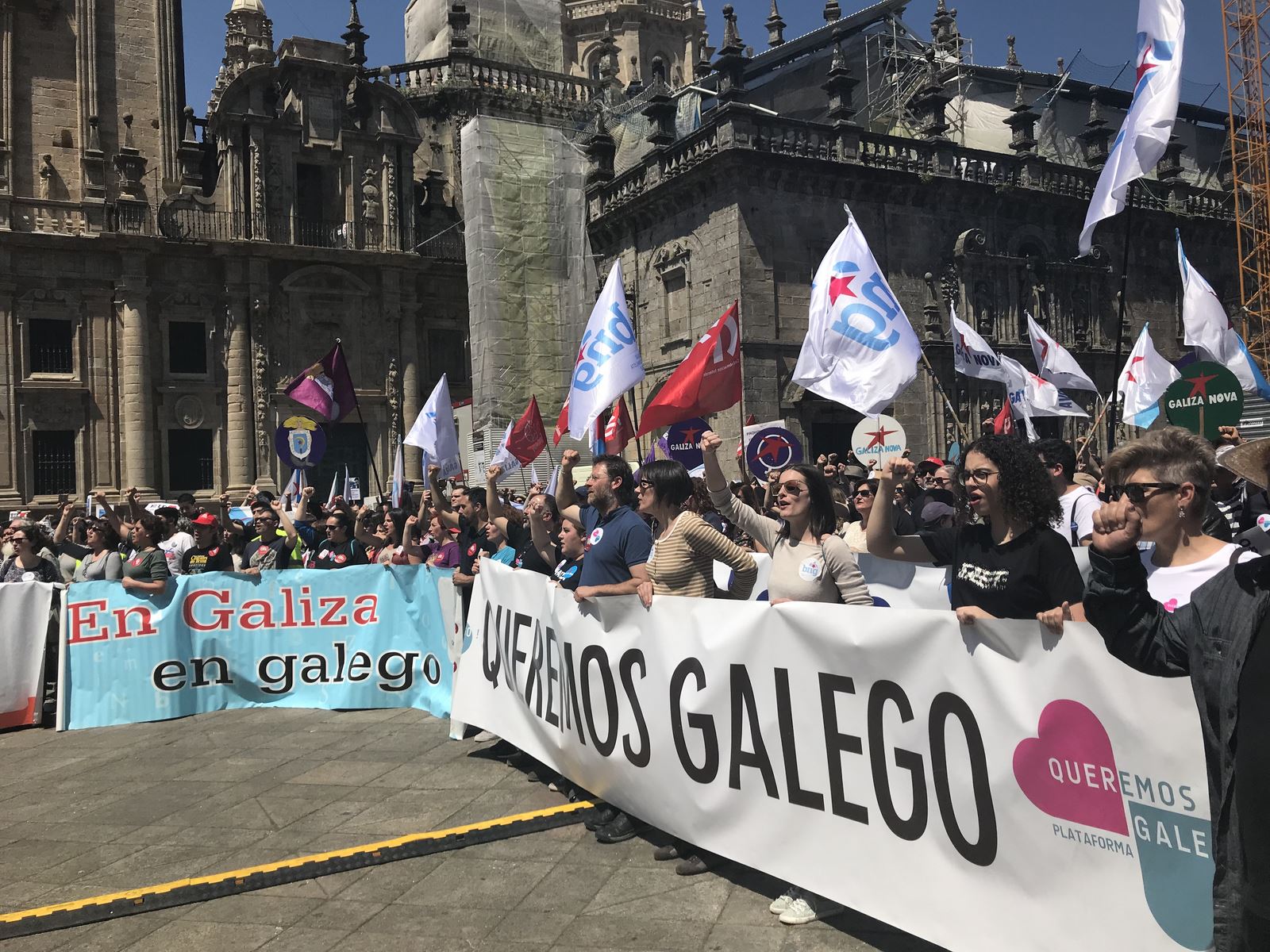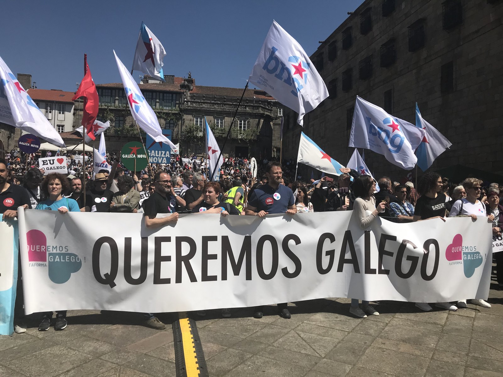 Ao remate da manifestación, que decorreu nun ambiente festivo e reivindicativo, o voceiro da plataforma Queremos Galego, Marcos Maceira lembrou que en Galiza é o propio goberno galego, co presidente Feixó á cabeza, quen actúa como un “vulgar delegado do goberno español”, renegando das funcións que lle dá o estatuto de autonomía e da alta representación de Galiza que debería exercer. Unha política lingüística que provoca que o galego sexa o único idioma oficial do Estado que diminúe en falantes e carece de apoio do seu propio goberno.