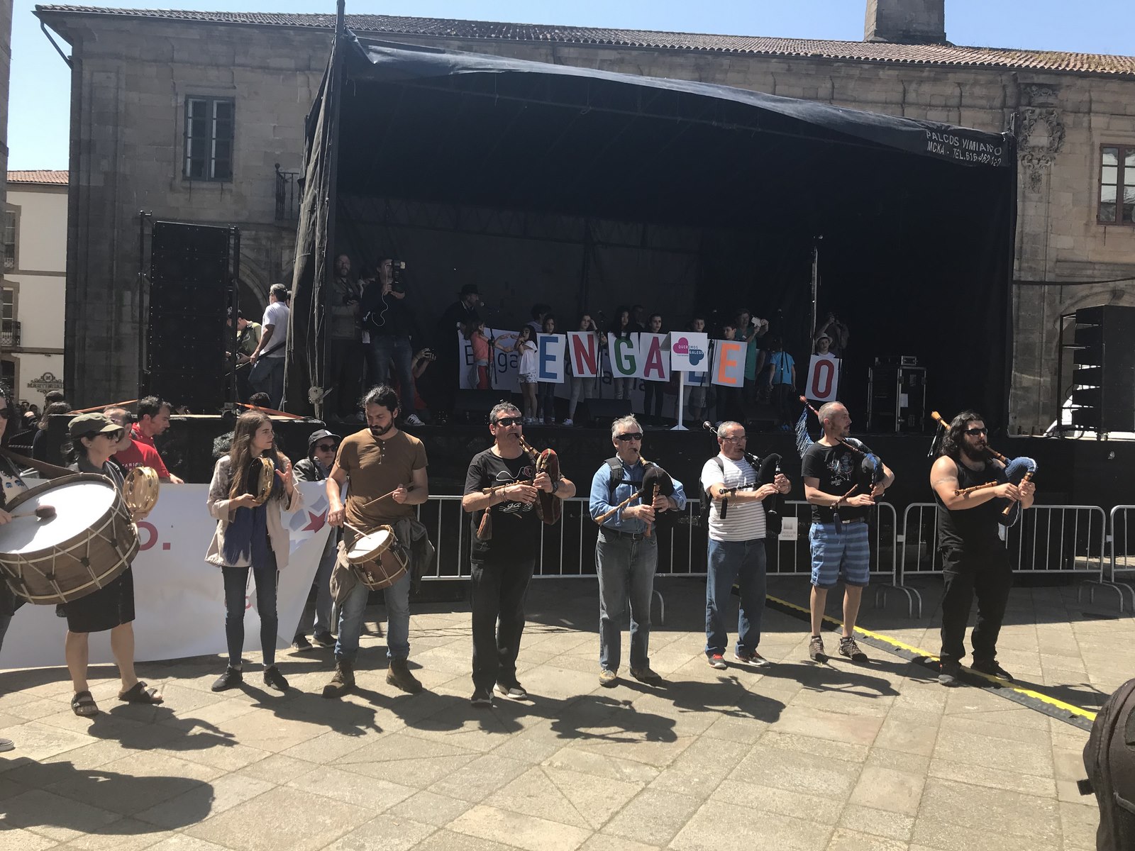 Fronte a isto, salientou que existe unha sociedade que actúa día a día para repor e normalizar a lingua galega, a través de centos de colectivos e entidades e en ámbitos moi diversos que estiveron representados, como todos os anos, no acto final da manifestación e asegurou que son moitas as persoas que sen falar galego aspiran a vencer as barreiras de todo tipo que lle impeden o mínimo de seguridade precisa para facelo e que demandan mudanzas que faciliten a súa instalación na lingua propia de Galiza.
