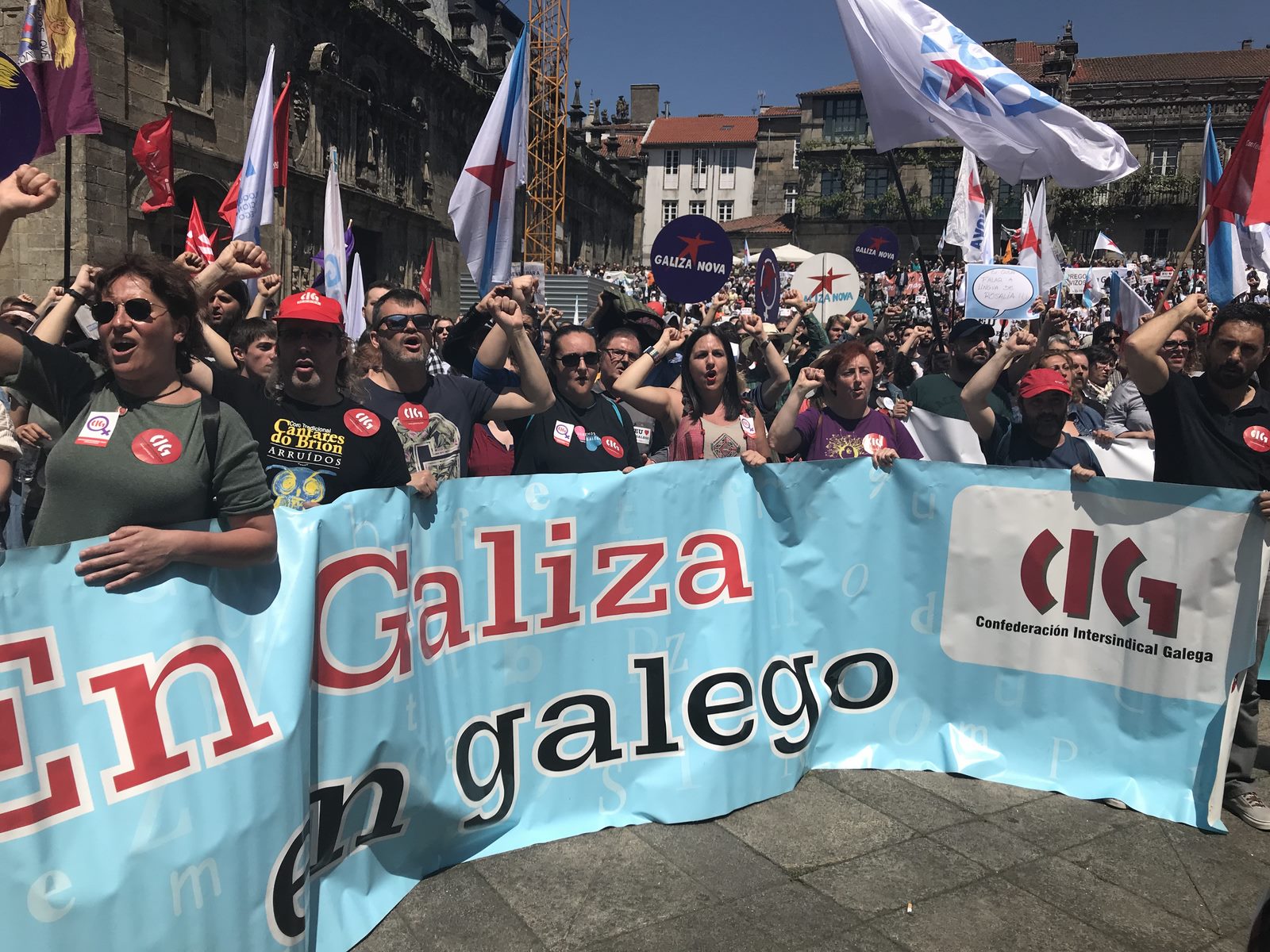 Unha multitudinaria manifestación percorreu as rúas de Compostela sob o lema “En Galego Día a Día” para reivindicar o esforzo de miles de persoas e colectivos para normalizar a lingua “fronte o 155 lingüístico da Xunta”. Un esforzo que non terían que facer se quixesen utilizar unha lingua plenamente normal co que, malia as políticas do goberno de Feixó, conseguen, día a día, manter viva unha lingua que non só non conta con amparo institucional senón que recibe desamparo e agresividade sistemática.