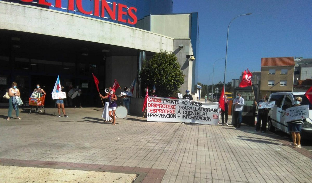 Mobilización no Gadis Hiper de Carballo para esixir información clara e protección fronte á covid19
