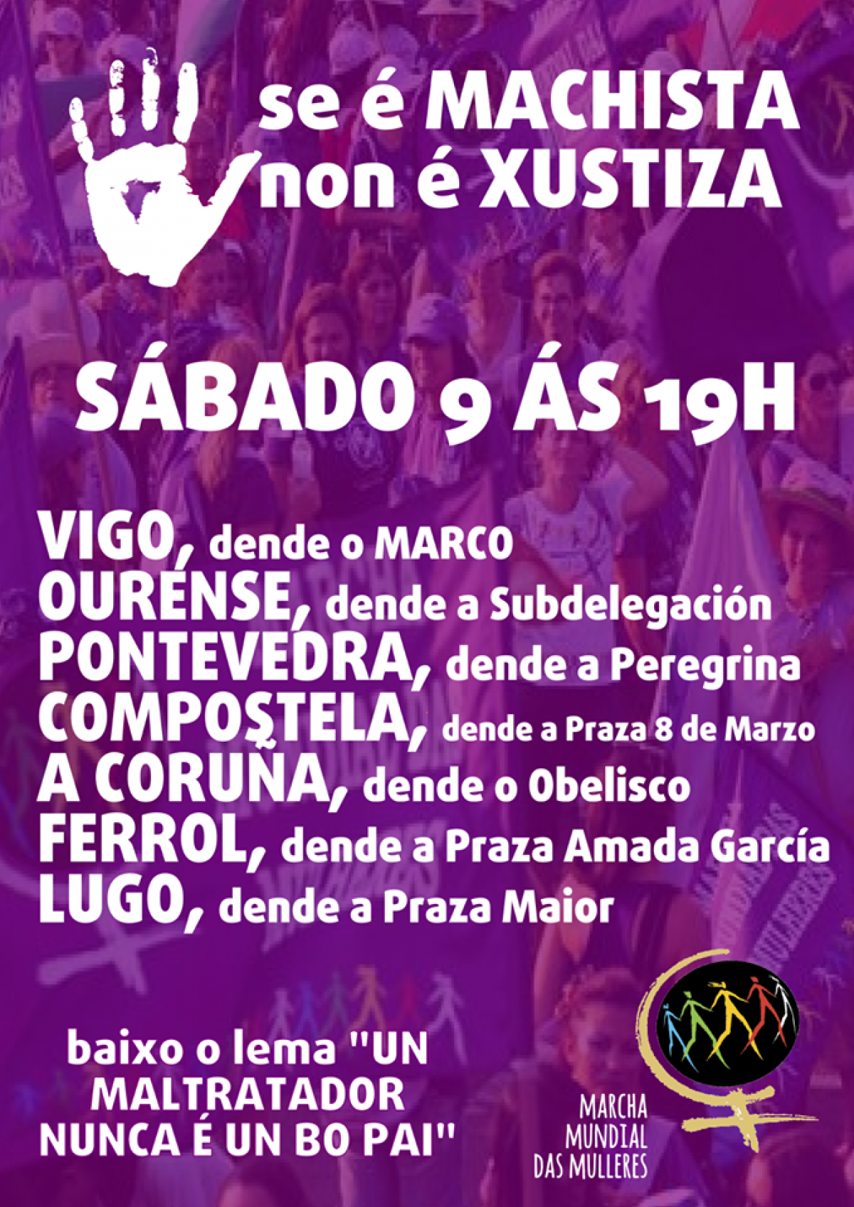 A Marcha Mundial das Mulleres, da que a CIG forma parte, xunto con outros colectivos e organizacións que forman parte do movemento feminista galego, solidarízase coa convocatoria de mobilizacións para o sábado 9 de setembro, impulsada por organizacións feministas no estado español. O obxectivo é denunciar que non se está a aplicar o artigo 10 da Lei 4/2015 do Estatuto da Vítima do Delito, que estabelece que "as crianzas menores e menores suxeitas e suxeitos a tutela, garda e custodia das mulleres vítimas de violencia de xénero terán dereito ás medidas de asistencia e protección".