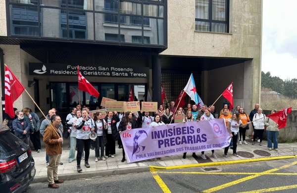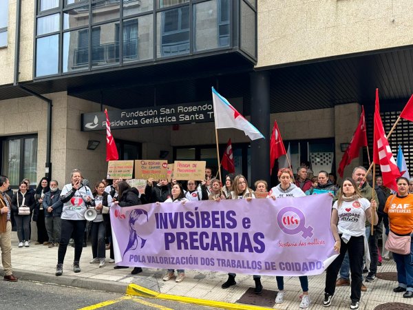 Na concentración, que se desenvolveu de 11:00 a 12:00 horas ao berro de “Non somos escravas, somos traballadoras” e “San Rosendo, escoita, estamos en loita”, participaron medio cento das arredor de 80 persoas que traballan na residencia, que estiveron acompañadas por delegadas da CIG no sector dos coidados (SAF e residencias).
