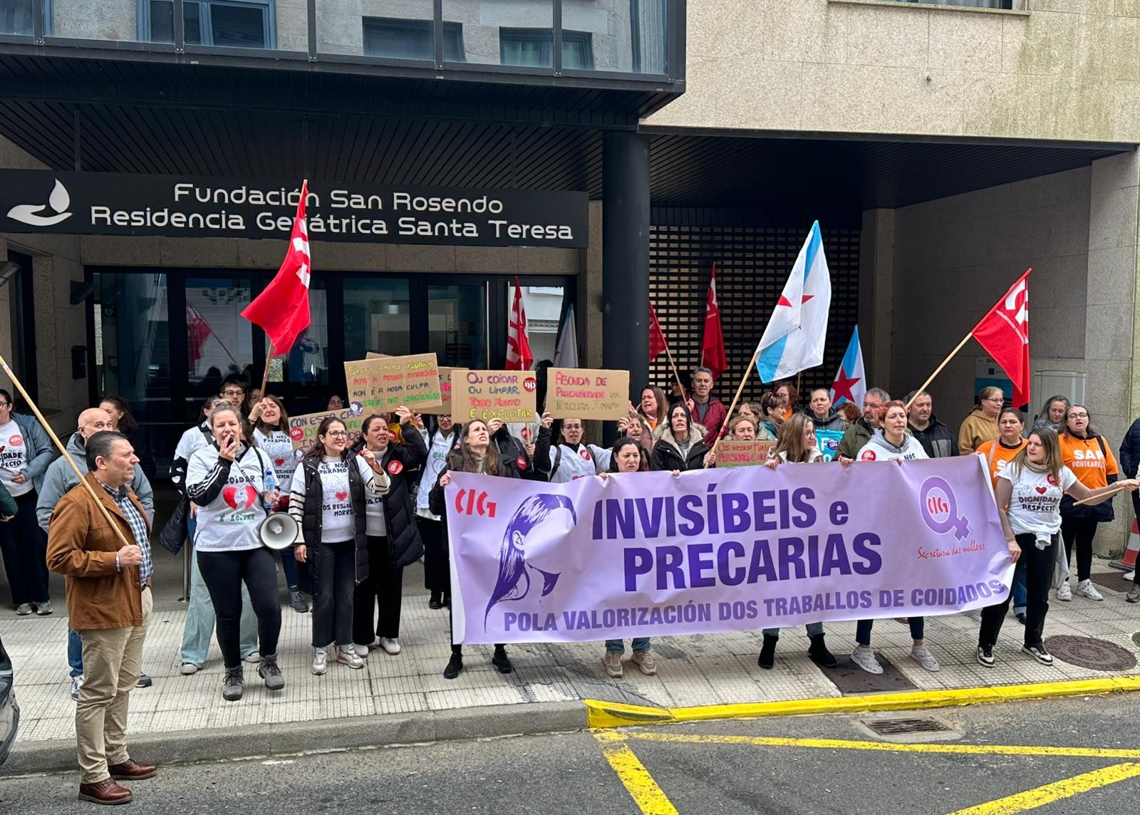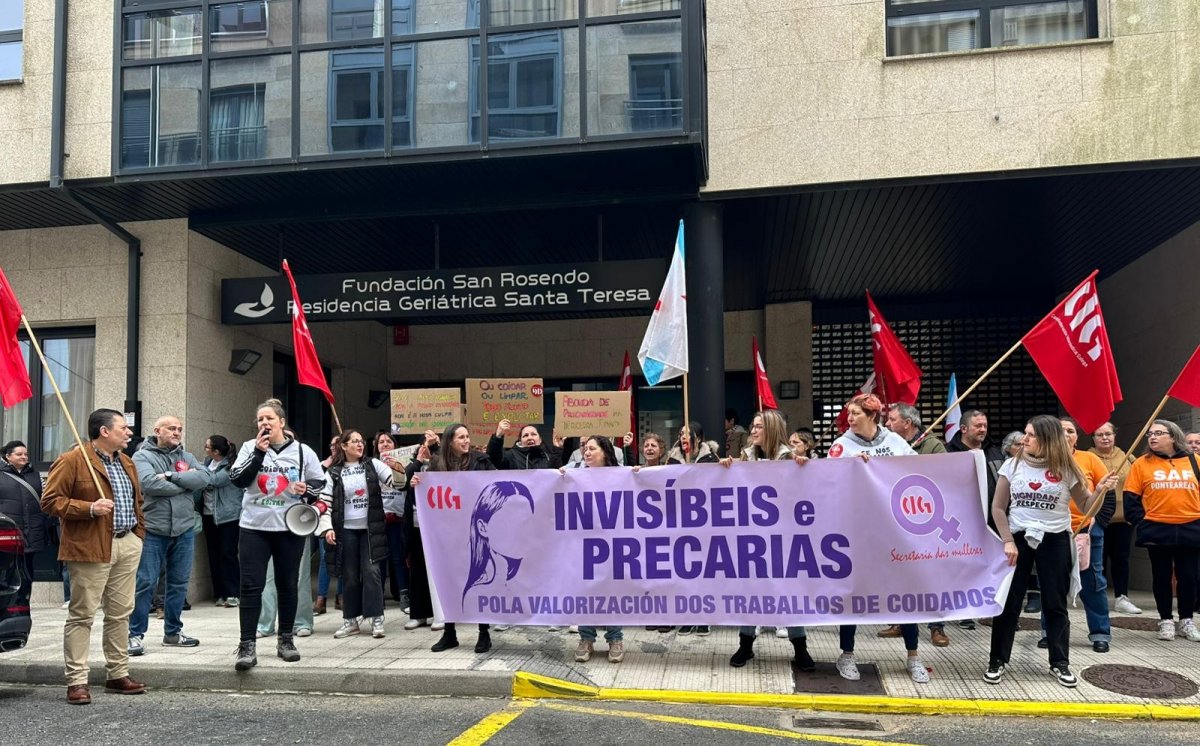 Persoas traballadoras da Residencia Geriátrica Santa Teresa da Cañiza mobilizáronse hoxe diante do centro de maiores xunto a delegadas da CIG no sector de coidados para reclamar a dignificación das súas condicións laborais, máis persoal e unha mellora das instalacións que redunde na mellora da atención e das condicións de vida das persoas usuarias.