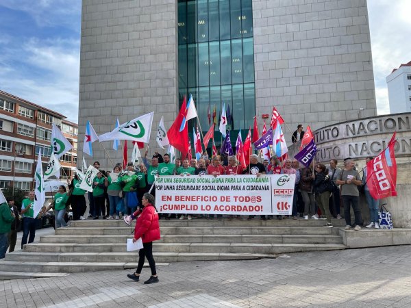 Delegados/as sindicais e traballadores/as do Instituto Nacional da Seguridade Social (INSS) desenvolveron onte unha concentración diante da dirección provincial do organismo público en Vigo para esixir o cumprimento do acordo polo que se establecen as condicións iniciais para a implantación dun plan estratéxico de recursos humanos na administración da Seguridade Social. Acordo asinado polo Secretario de Estado da Seguridade Social e Pensións, Borja Suárez Corujo, e que, segundo denuncian, el mesmo incumpre.
