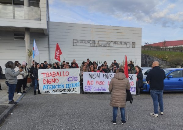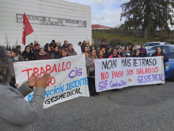 A CIG-Servizos de Ourense desenvolveu este martes concentracións diante do Concello do Carballiño e da residencia de maiores do Cornubal, situada tamén na localidade, para denunciar impagos e atrasos no pago dos salarios nos servizos xestionados pola empresa Gestmedical.
