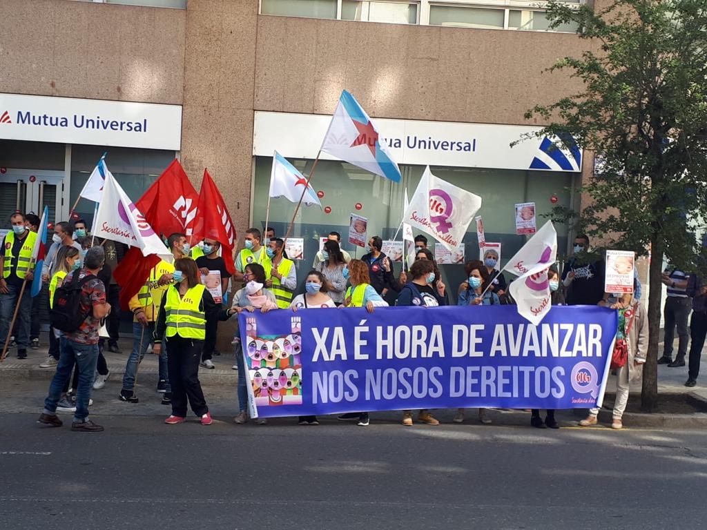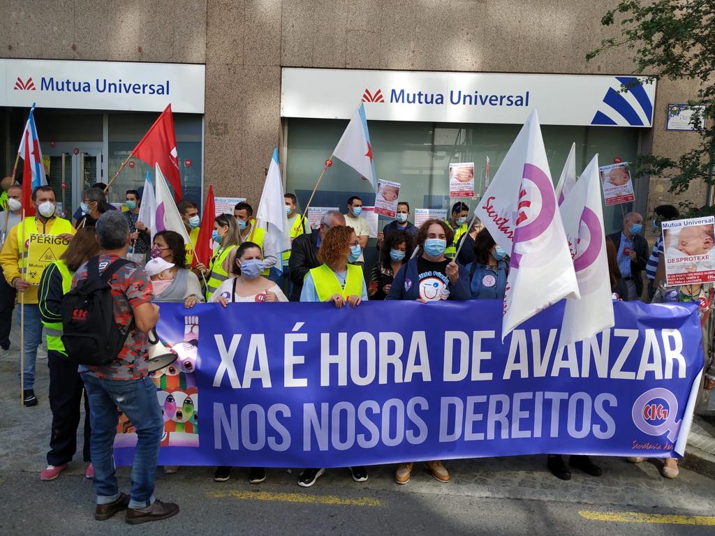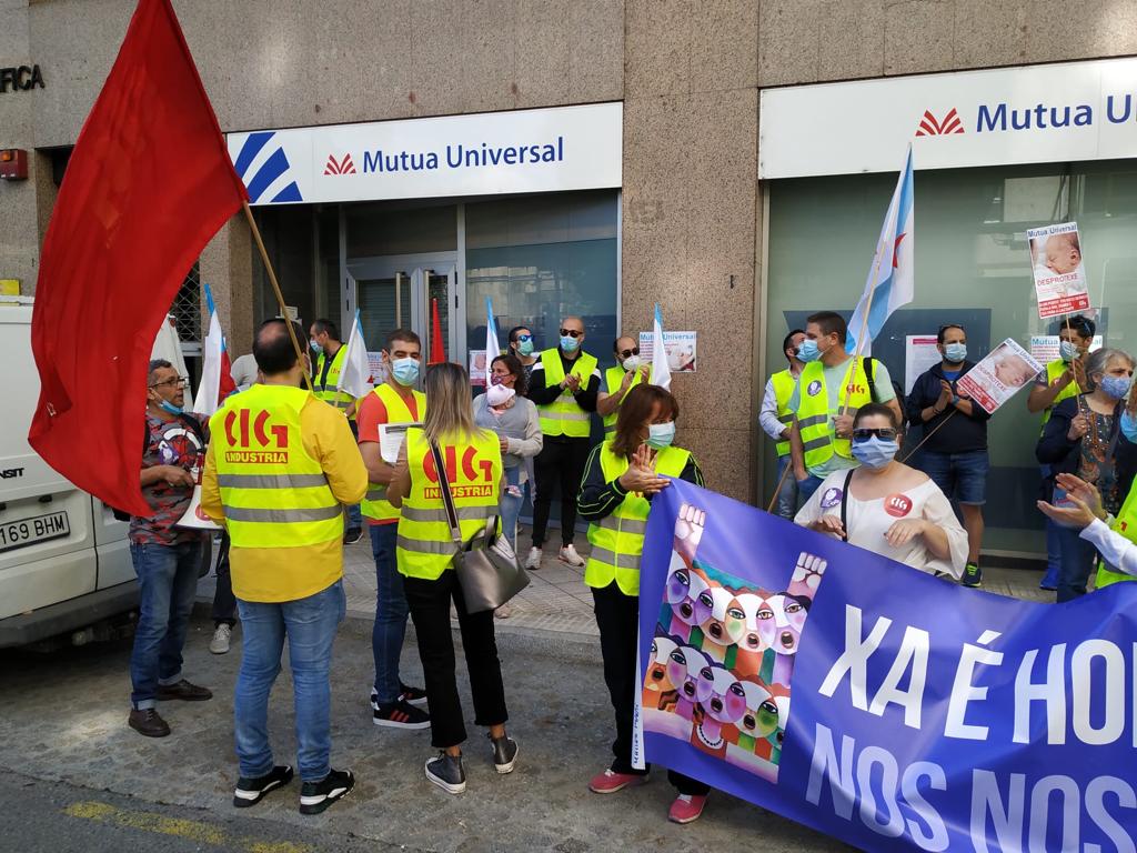 Con esta mobilización, que tivo lugar a partir das 11:30 horas, queren denunciar que esta mutua denegoulle a suspensión do contrato a unha soldadora da empresa GRI Towers que se atopa en período de lactación, co conseguinte risco tanto para a súa saúde como para a da súa crianza.