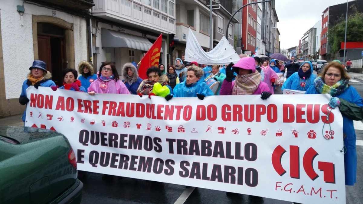 Na súa intervención, o responsábel comarcal da FGAMT-CIG criticou a "cara dura" do Grupo Deus, que nestes días comezou a entregar as cartas de despedimento ás 103 traballadoras afectadas polo ERE, admitindo que non lles vai pagar nin a indemnización nin os salarios adebedados.