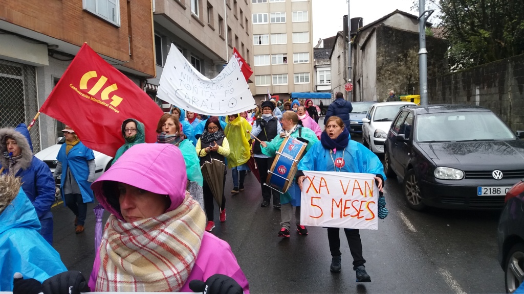 As traballadoras do Grupo Deus non se arredan nin diante das alertas meteorolóxicas, nin do frío, nin da sarabia nin da choiva. Coa dignidade que as caracteriza, as traballadoras realizaron este mércores outra marcha a pé dende a fábrica até a Alameda de Ordes para reclamar contra un ERE que é unha fraude e na defensa dun dereito tan básico como cobrar un salario polo traballo feito.