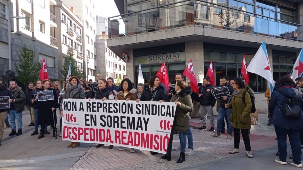 A protesta desenvolveuse a partir do mediodía diante das instalacións da compañía, na rúa Pedro Sarmiento de Gamboa número 3, no centro da cidade, ao berro de “Non á represión en Soremay”, “Contra a represión, mobilización” e “Soremay, escoita, estamos en loita”. Dende a central denuncian que se trata dun claro caso de represión sindical, polo que os seus servizos xurídicos xa traballan no recurso para reclamar a nulidade da rescisión de contrato “inxusta e arbitraria” que tivo lugar o pasado 28 de novembro.