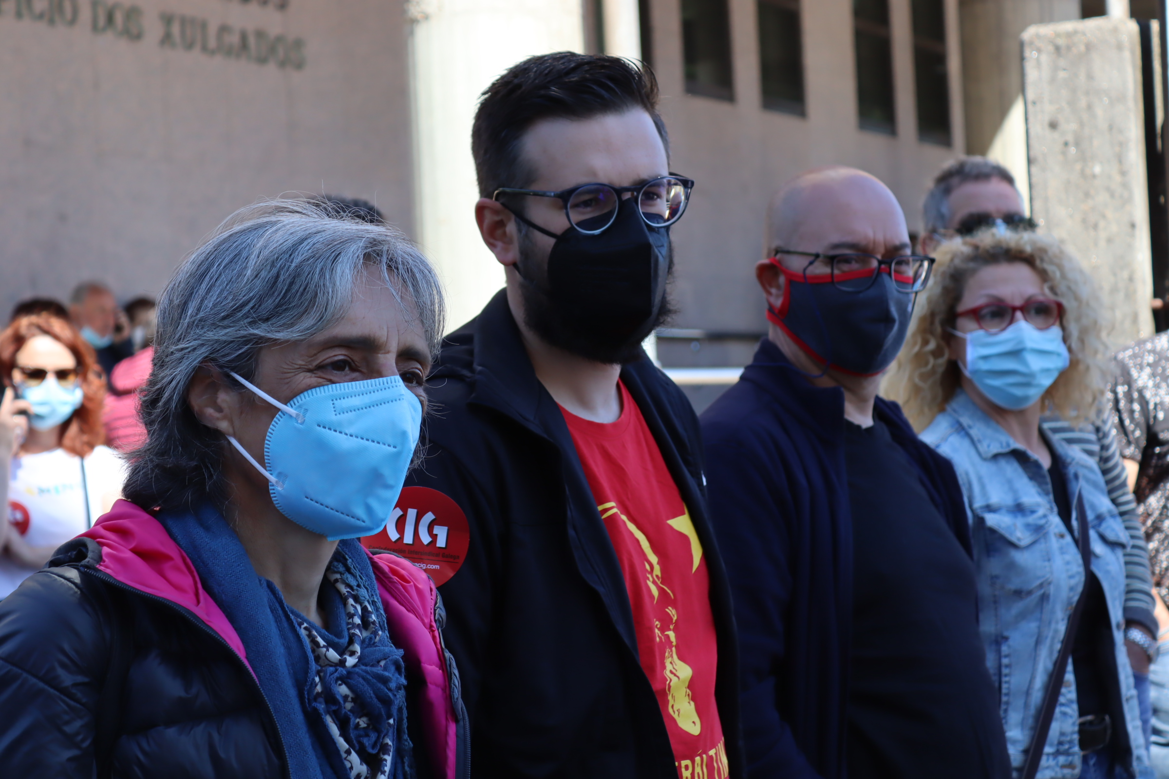 Delegados/as da CIG mobilizáronse hoxe diante do Xulgado do Social de Vigo coincidindo coa celebración do xuízo para dirimir o recurso presentado pola central sindical contra a amoestación a unha empregada do Centro Industrial do Porriño de Nueva Pescanova que denunciou acoso sexual e laboral na empresa.