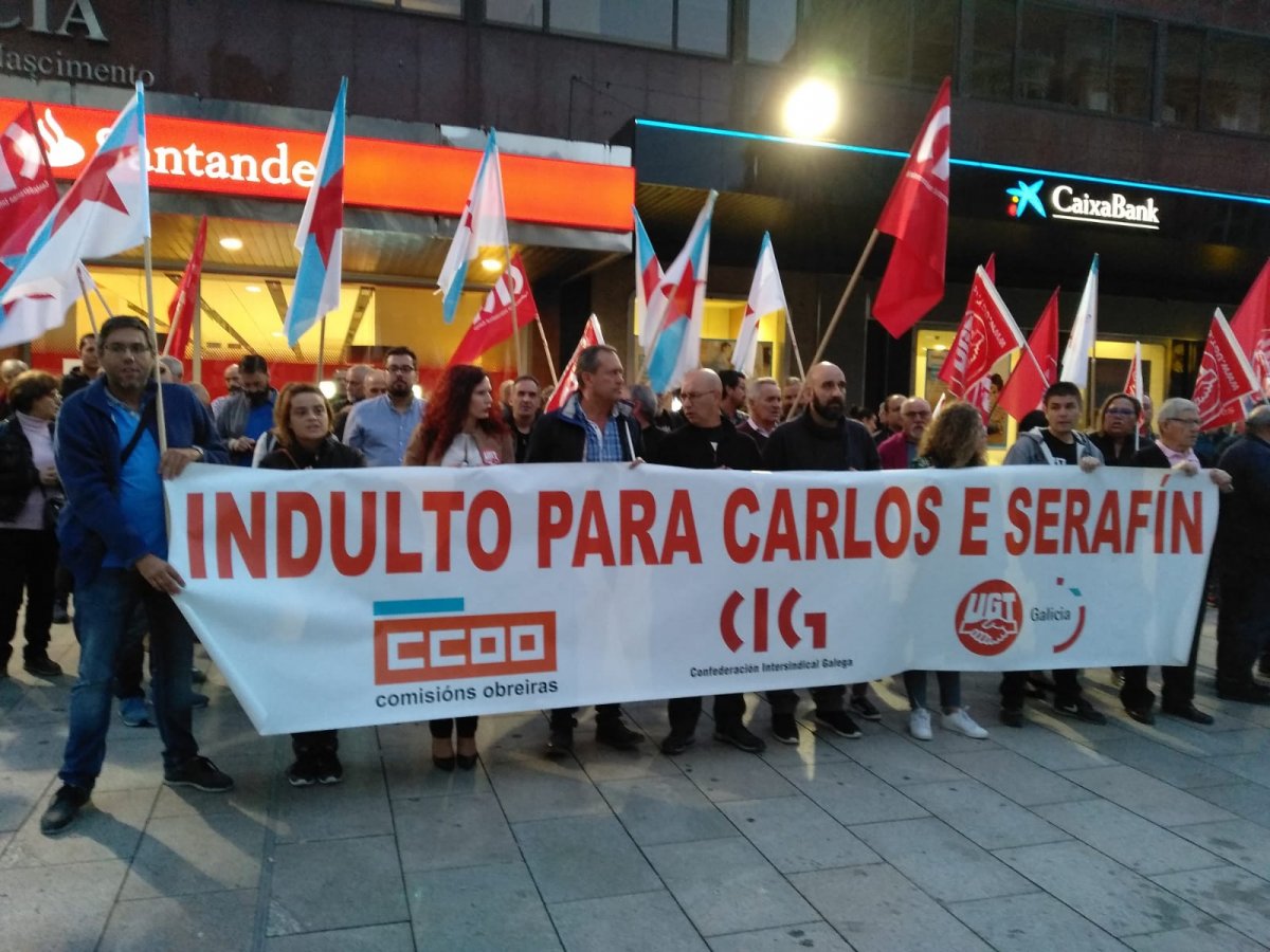 O Goberno do Estado mudou, mais Carlos e Serafín continúan á espera do indulto. Na tarde deste xoves concentrámonos de novo en Vigo para esixir que se poña fin a esta inxustiza e se evite a pena de tres anos á que foron sentenciados por unha "Xustiza" a medida da patronal. Menos xestos e máis medidas concretas! Non máis escusas: indulto xa!