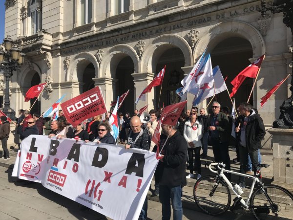 Os traballadores e traballadoras de Albada volvéronse concentrar este venres na Praza de María Pita para esixir a intervención inmediata do Concello da Coruña no conflito aberto coa empresa a causa do bloqueo da negociación do novo convenio colectivo. A protesta prodúcese a pouco máis dunha semana do inicio da folga indefinida na planta de tratamento de residuos de Nostián.