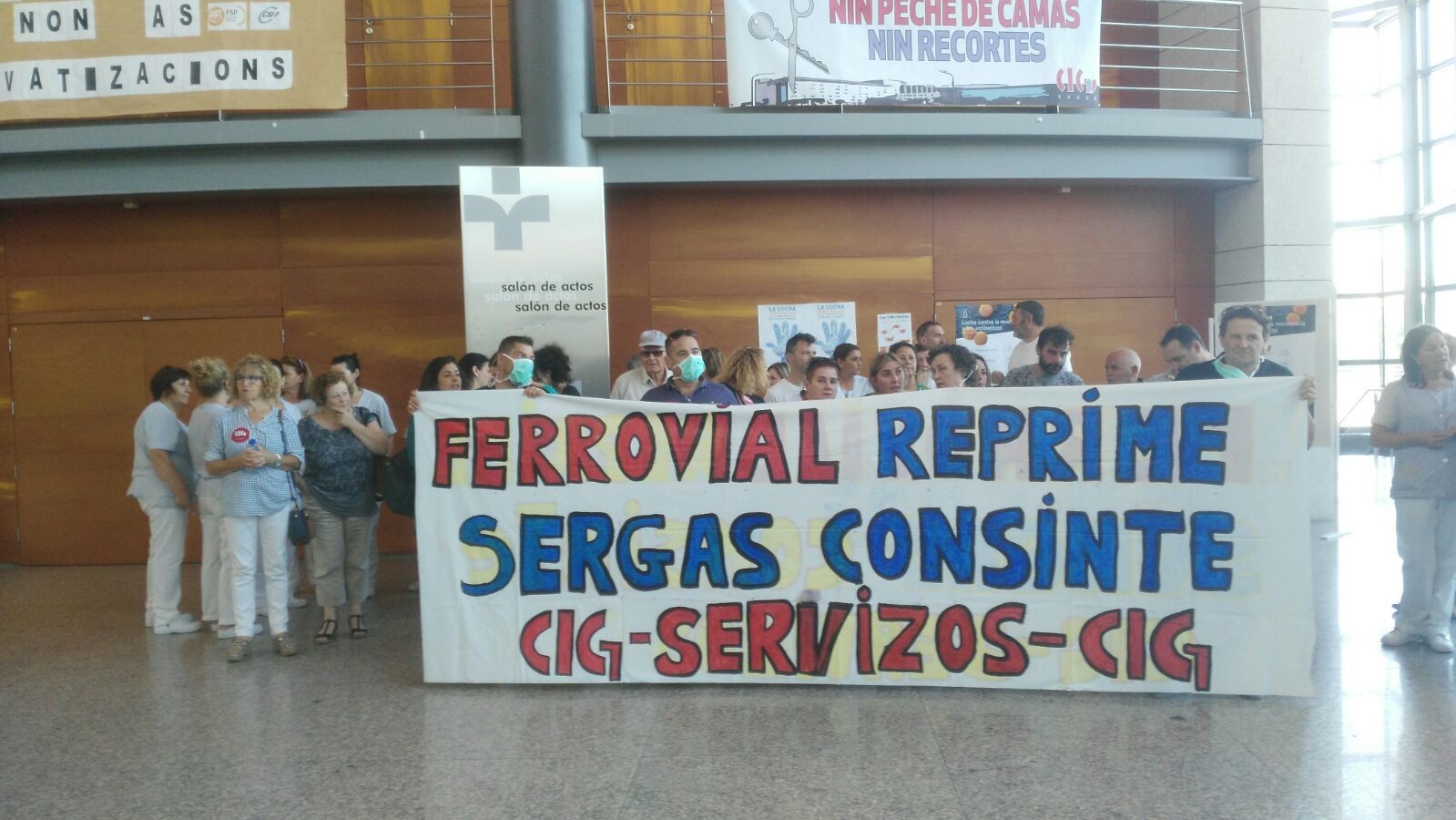 Como a CIG-Servizos ten denunciado en diversas ocasións, o persoal da limpeza do hospital leva cos salarios practicamente conxelados dende o ano 2012. E por se non fora abondo, Ferrovial aplica unha política de represión laboral, castigando os/as traballadores/as que caen de baixa médica con cambios de postos, mudándolle os horarios, ou aproveitándose da bolsa de hora para envialos a facer os traballos máis penosos.