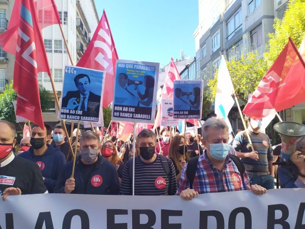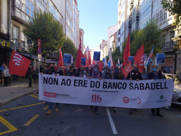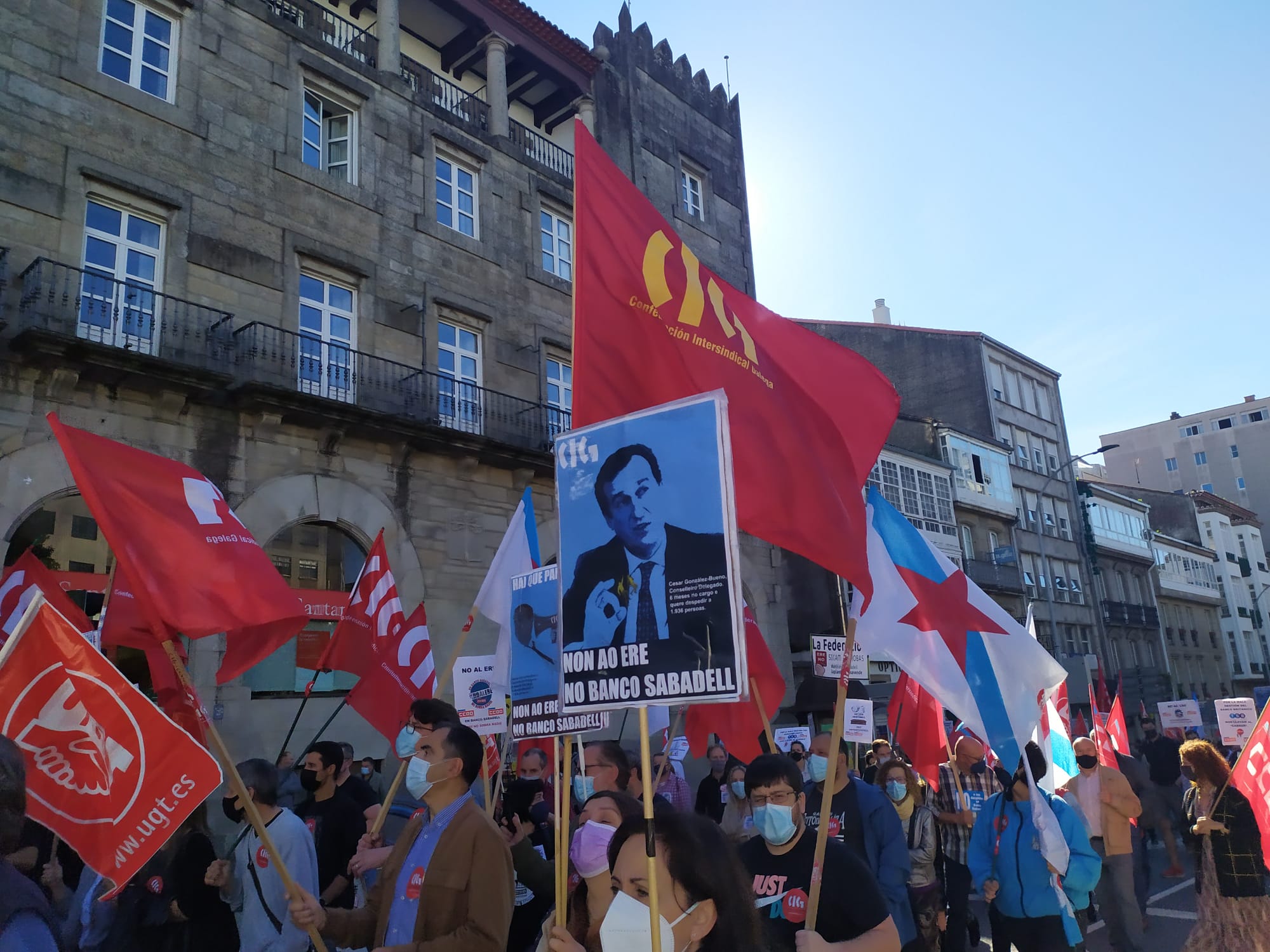 Nova xornada de folga e manifestación contra o ERE do Sabadell que afectará de xeito principal ás traballadoras