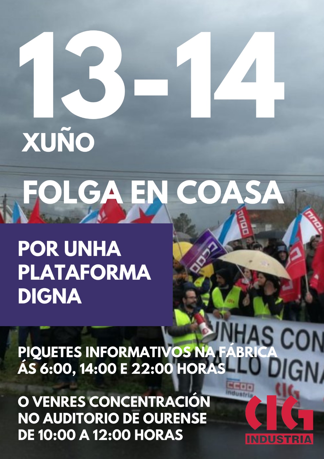 As convocatorias de folga poderían estenderse a todos os martes e xoves de xuño se a empresa non recapacita, “xa que levamos en conversas dende novembro e Coasa non fai máis que dilatar as negociacións facendo ofertas moi distantes ás nosas propostas”.