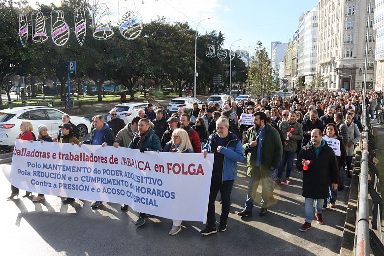 "O que reclamos, reiterou Montero, non é nin máis nin menos que senten negociar coa representación sindical, pero o banco nin contesta". Por iso, ao remate da manifestación diante da OP xa se adiantou que "ou Abanca muda a súa política ou o conflito continuará adiante até conseguir os nosos obxectivos".