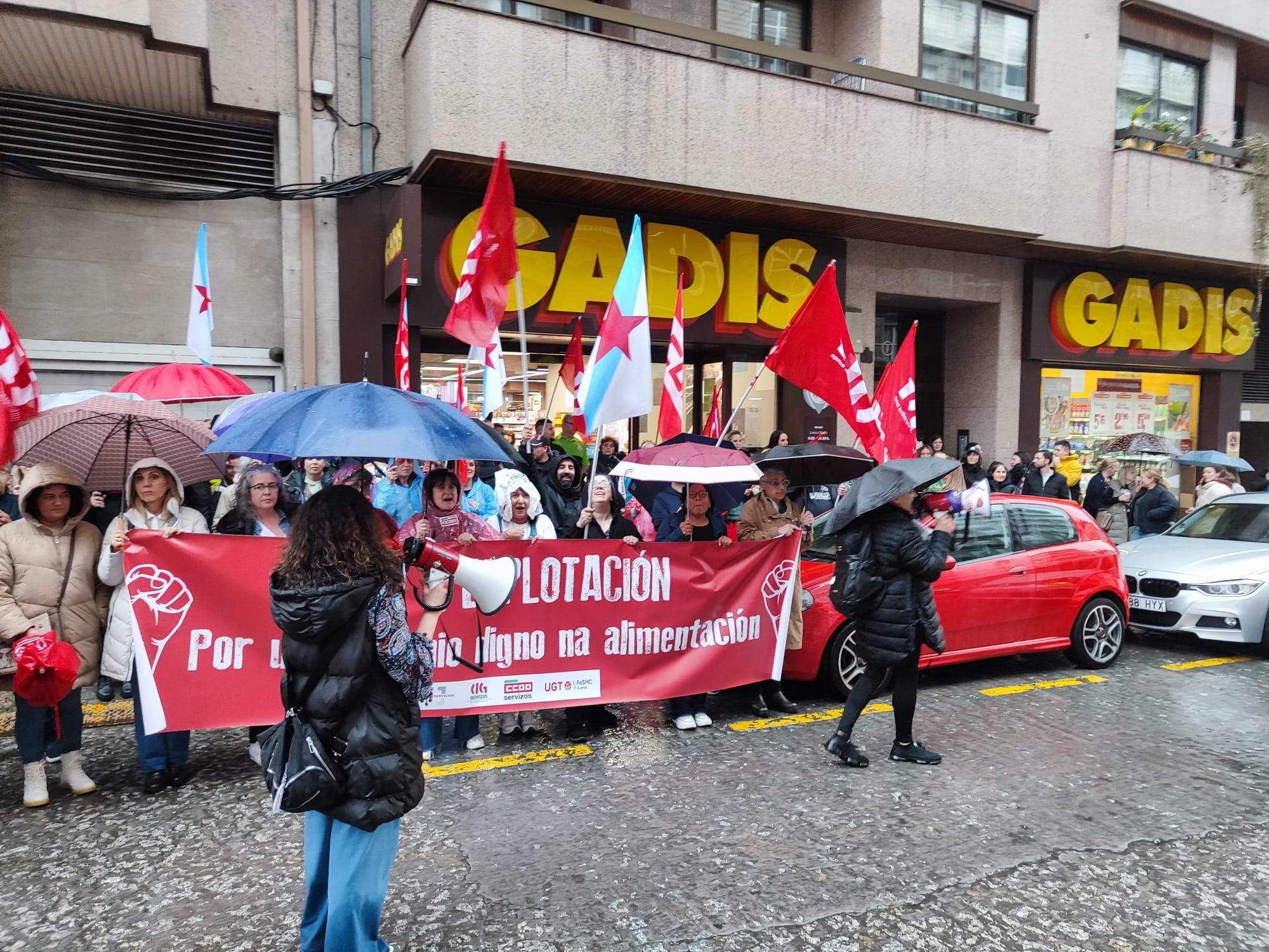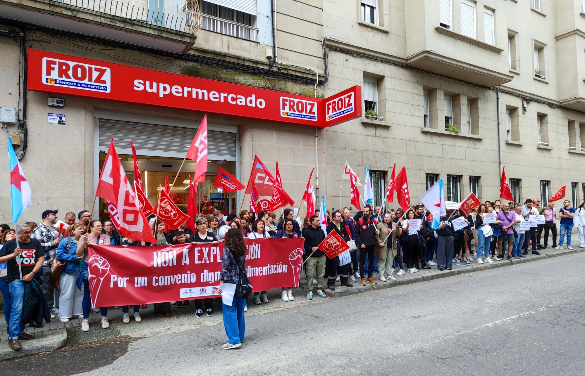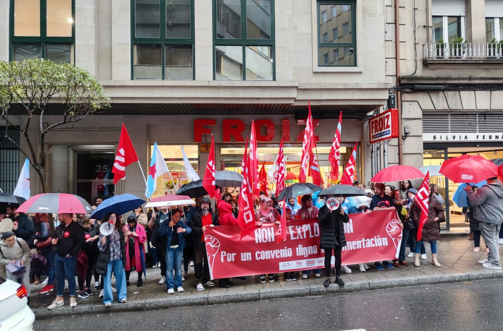 As concorridas protestas diante de establecementos dos tres grupos empresariais que negocian o convenio colectivo (Froiz, Gadis e Cuevas) desenvolvéronse ao longo de boa parte do día, con concentracións pola mañá e pola tarde ao berro de “Esta batalla ímola gañar”. Durante as protestas convocadas pola CIG, CCOO, UGT e USO berráronse tamén consignas como “Emprego digno e con dereitos”, “Non, non, non á explotación” “Queremos traballar e non mendigar”, “O noso sacrificio é o seu beneficio” e “Estamos fartas de ser explotadas”.