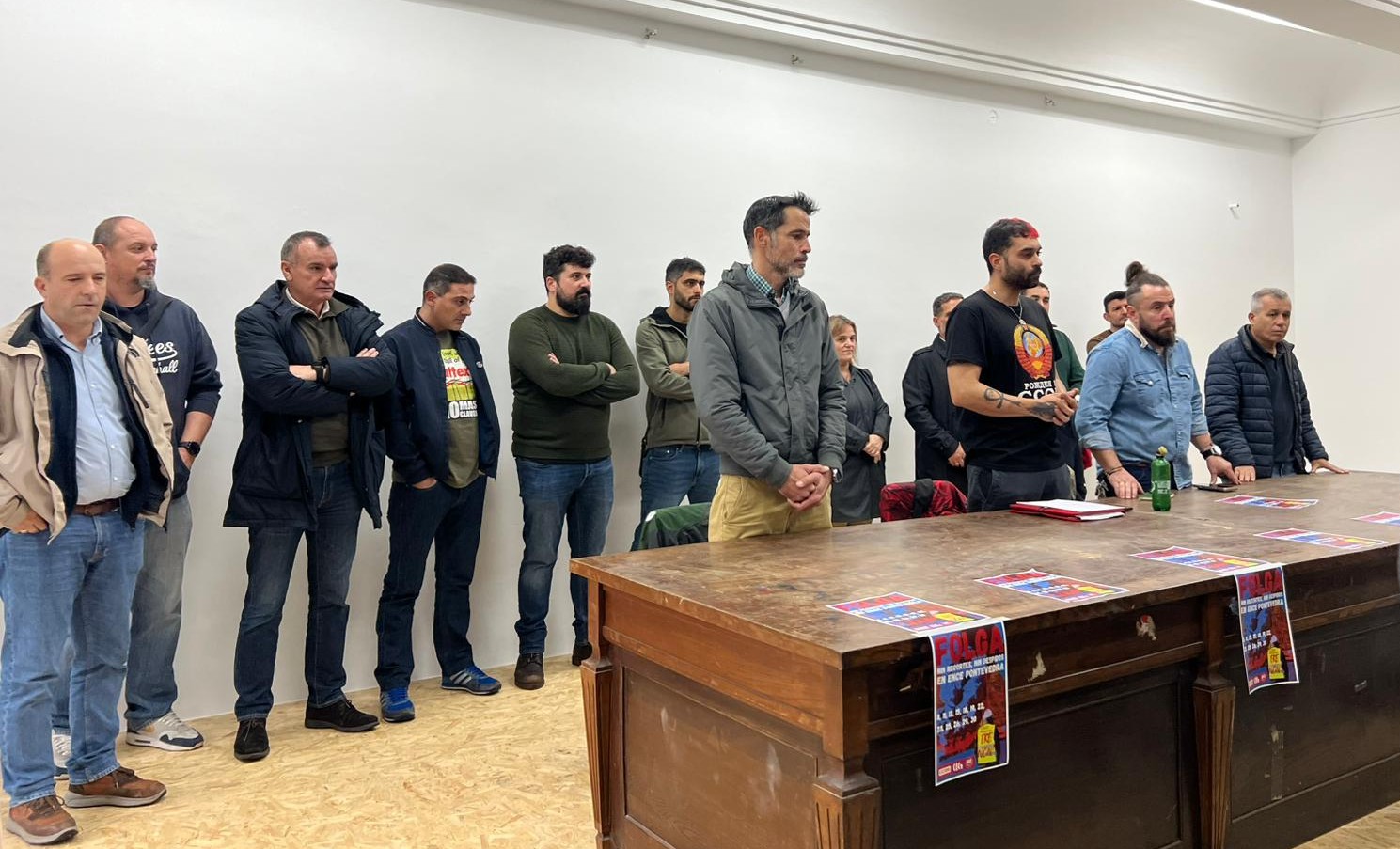 Os paros de 24 horas darán comezo este sábado 8 e continuarán os vindeiros días 12, 15, 18, 19, 22, 23, 25, 26, 29 e 30 de novembro. A asemblea de persoas traballadoras celebrada onte amosou o seu total apoio a este calendario de mobilizacións en resposta á “guerra aberta” pola dirección da pasteira contra o seu cadro de persoal.