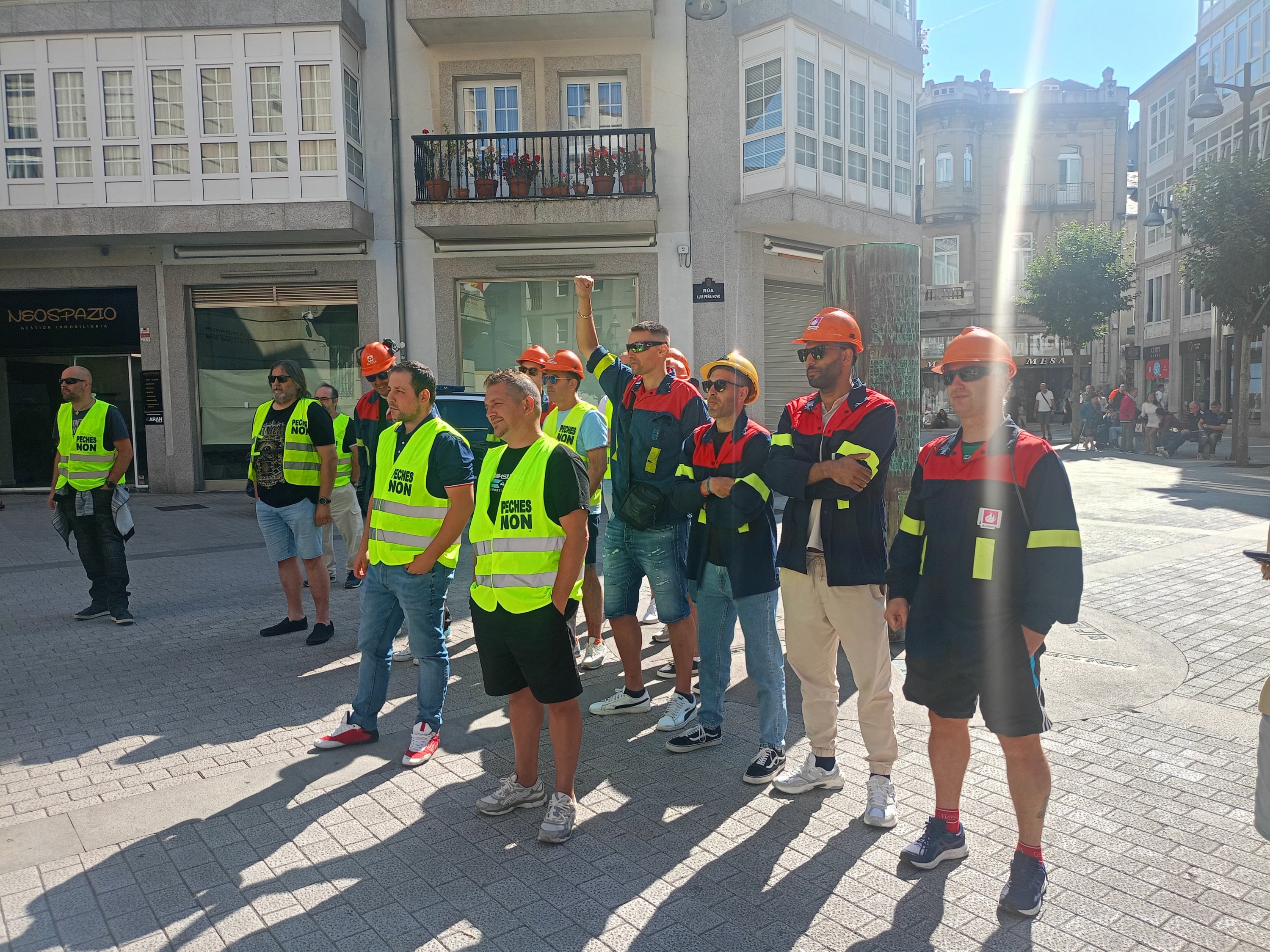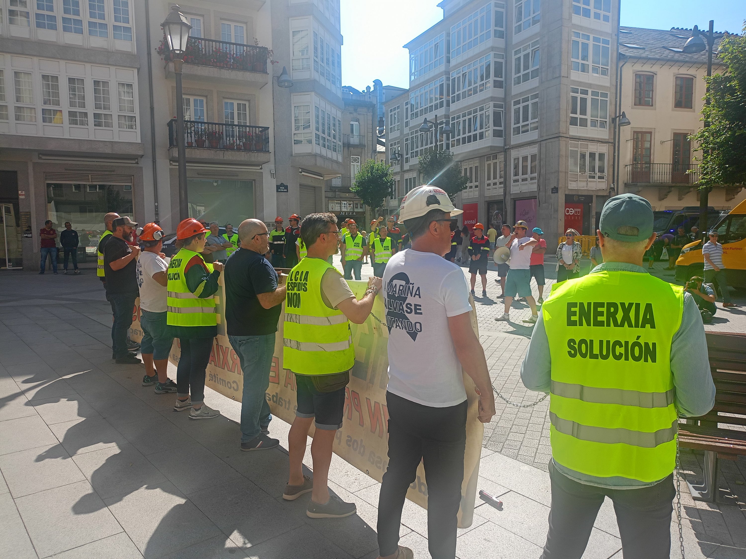 Durante a protesta, os delegados e delegadas e un grupo de persoas traballadoras da factoría encadeáronse diante do edificio gobernamental reclamando unha xuntanza do Delegado do Goberno a través da Subdelegada en Lugo, que non puido contactar con Pedro Blanco xa que se atopaba entregando unha medalla á infanta Leonor.