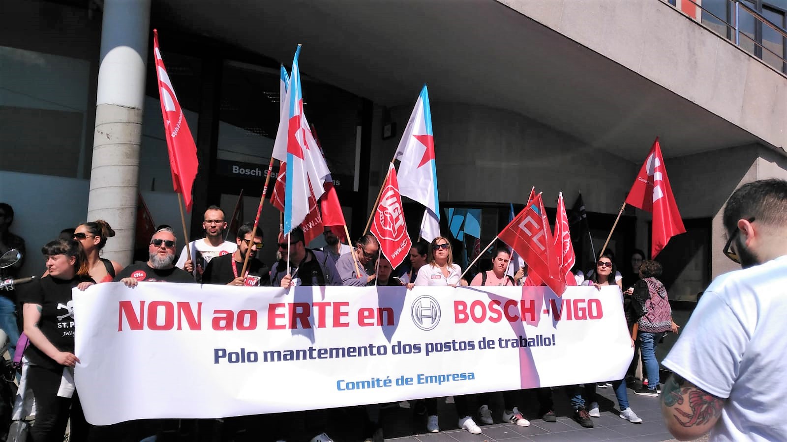 O comité de empresa de Bosch, compañía do sector dos centros de chamadas con sede en Vigo, convoca unha folga de 24 horas o vindeiro mércores 27 para rexeitar o ERE temporal para 540 traballadoras/es que se está a aplicar dende o pasado mes de febreiro. O cadro de persoal aproveitará a xornada para desenvolver concentracións diante das instalacións da empresa na cidade.