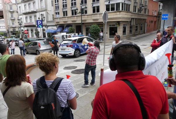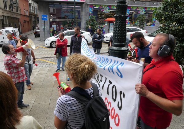 As protestas tiveron lugar, tal e como decidiron onte os traballadores/as en asemblea, diante das oficinas da concesionaria municipal, na rúa Manuel Núñez, onde os delegados/as do comité despregaron unha faixa e fixeron ruído cun bombo e con bucinas. Ademais, berraron consignas como “Nesta concesión falta información” e “Menos horas extra e máis contratacións”.