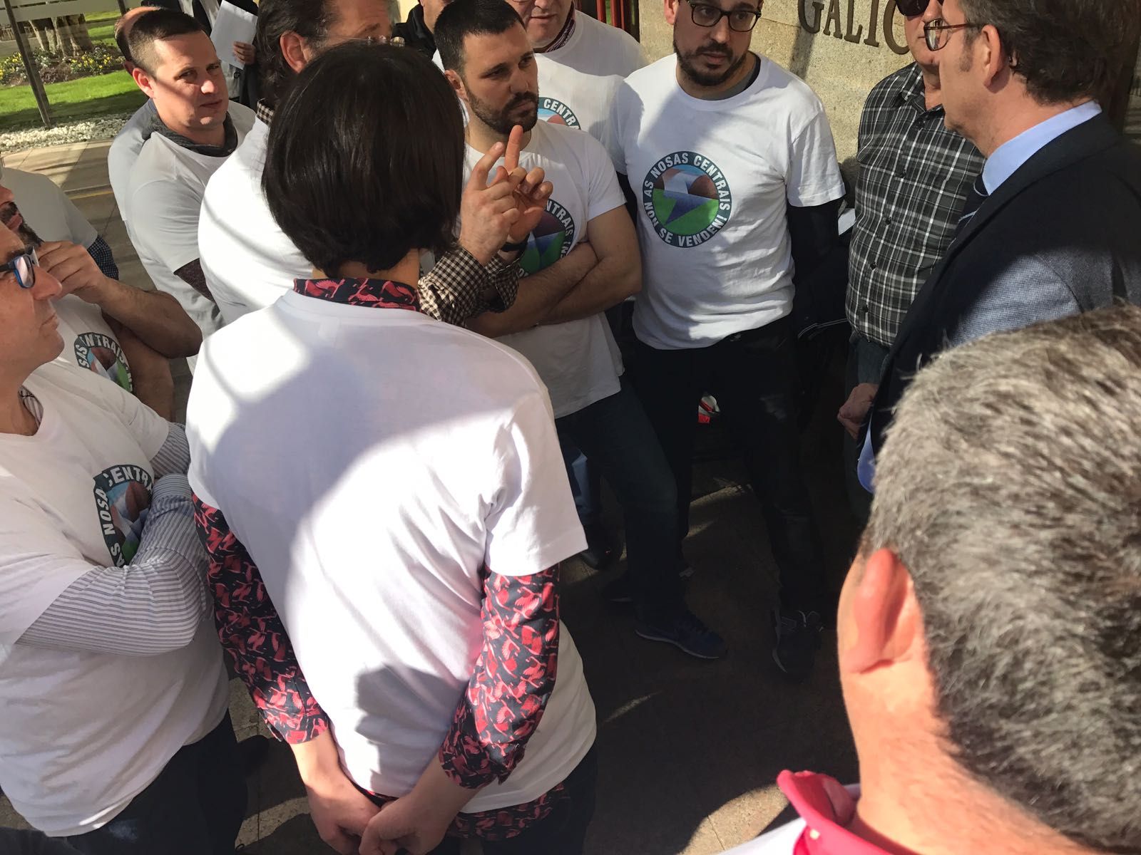 O encontro, forzado e de carácter informal, produciuse ás portas do Pazo do Hórreo e só foi posíbel porque o Presidente non logrou eludir os traballadores, que de xeito contundente lle trasladaron as súas reivindicacións. Neste marco, Feijoo confirmou que a administración galega non recibiu aínda ningunha proposta da empresa, e que, de habela, a Xunta valorará -en base ao plan industrial presentado- se respecta o interese público e se garante o emprego. Iso si, matizou, cumprindo sempre coa legalidade.