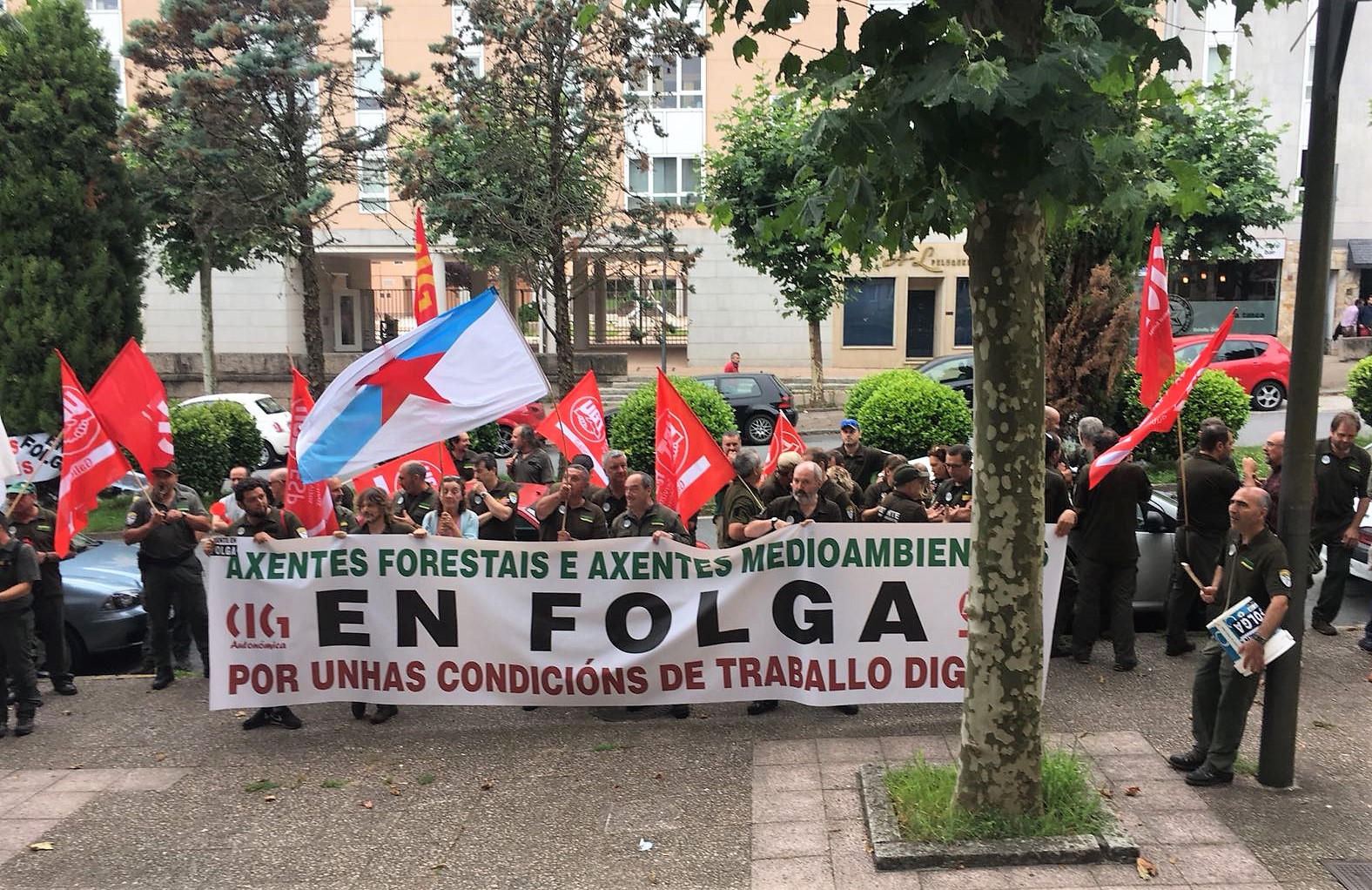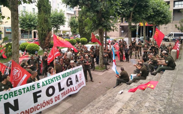 O comité de folga dos axentes forestais e ambientais da Xunta (CIG e UGT) levantáronse hoxe da mesa de negociación ante a negativa da Dirección Xeral da Función Pública a incorporar as súas demandas ao acordo laboral que regule as súas condicións de traballo. Arredor de 200 persoas concentráronse no exterior do edificio durante a xuntanza, onde celebraron unha asemblea na que apostaron por continuar co paro indefinido iniciado o pasado día 1, a excepción do persoal do Servizo de Conservación da Natureza, que adiou a folga e que estudará en asemblea o xeito de materializala sen poñer en risco a súa seguridade.