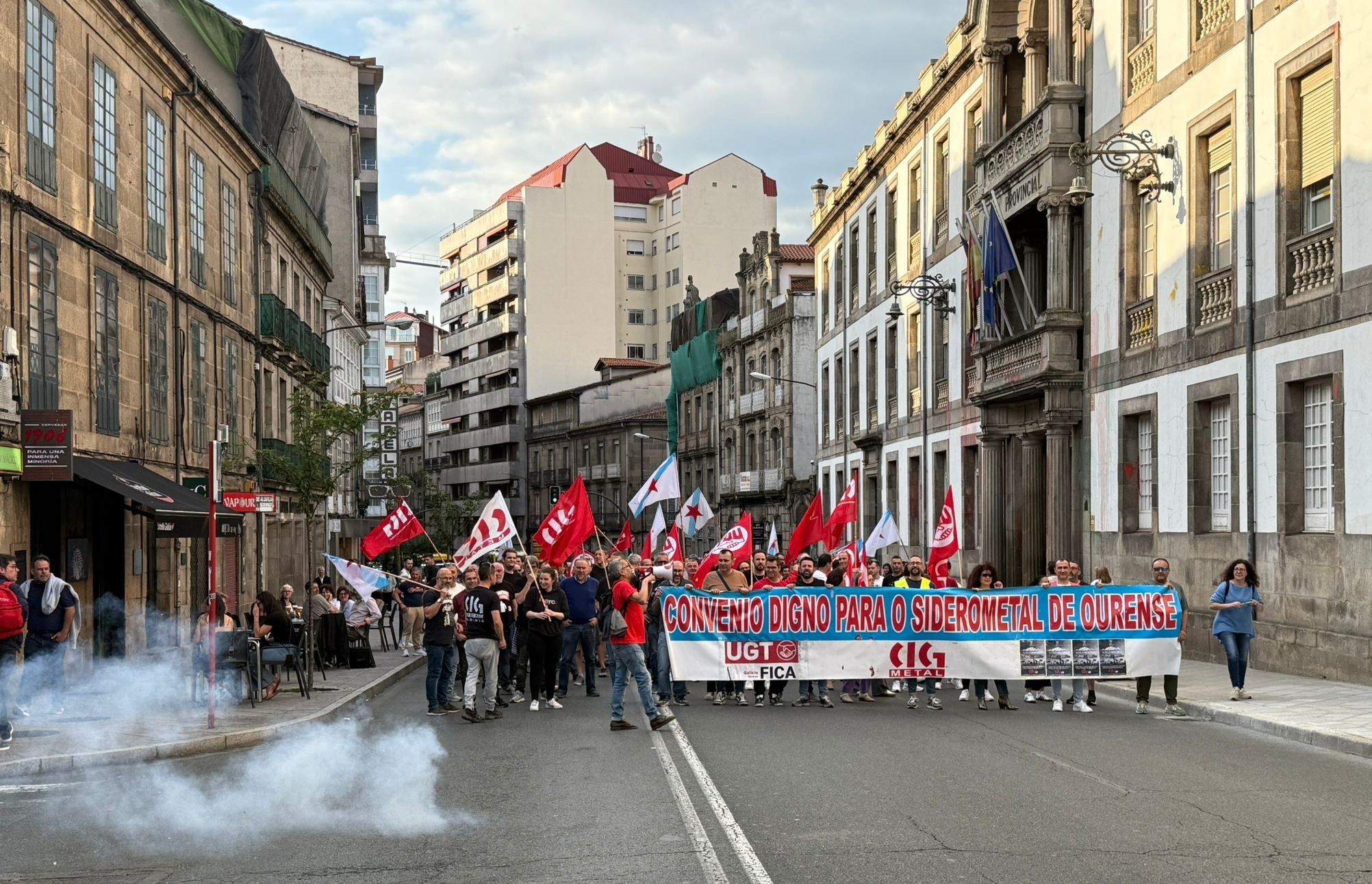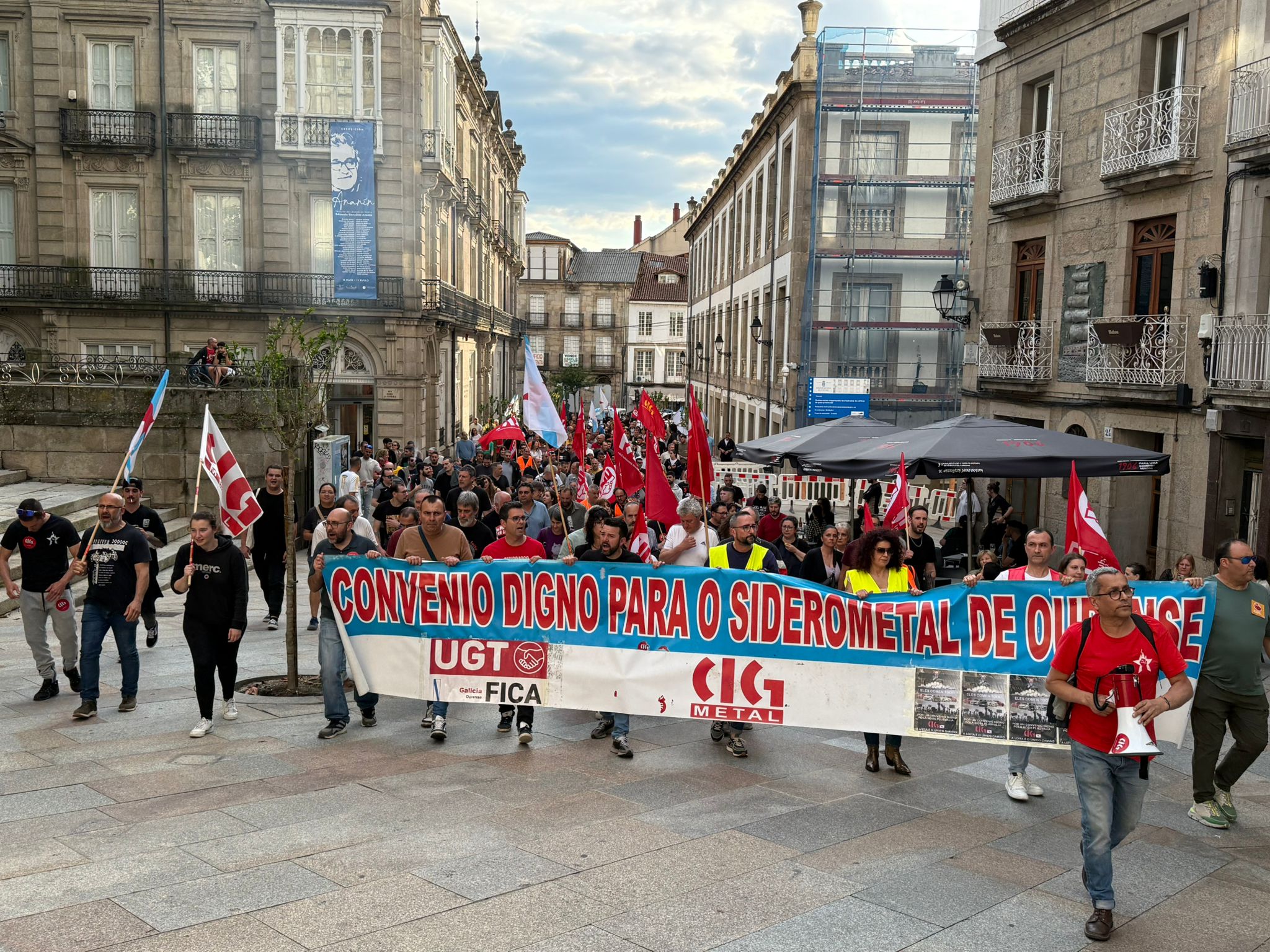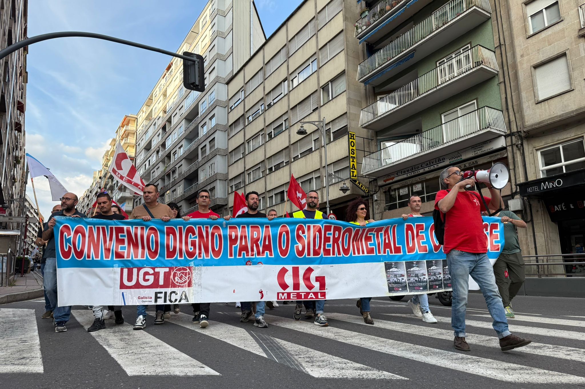 A mobilización- que se desenvolveu entre a Casa Sindical e a sede da CEO- foi convocada pola CIG e a UGT en resposta ao bloqueo das negociacións por parte da patronal, cuxa última proposta contempla un convenio a tres anos cunha suba de soldos do 3,5% para 2025 e do 2% para 2026 e 2027, sen redución de xornada e cunha cláusula de revisión salarial que como moito sería do 15% no conxunto dos tres anos.