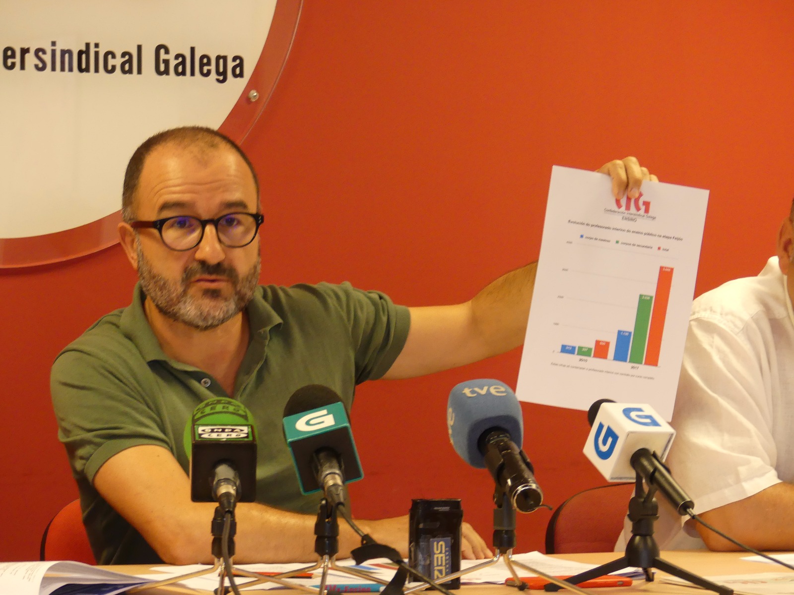 Denunciou ademais o reforzo das privatizacións e o recorte de profesorado e aulas, que se impuxo a finais de xullo “sen ningún tipo de negociación” e os recortes “máis escurantistas e de difícil control” en secundaria, onde non se publican os cupos de docentes de cada centro e onde se están producindo recortes permanentes na maioría dos centros. Un profesorado que, ademais, ve como parte do seu tempo se vai en tarefas burocráticas que se foron incrementando como cubrir papeleo, encher formularios, cumprimentar inquéritos, en detrimento do que debería ser o seu labor fundamental: a propia docencia.