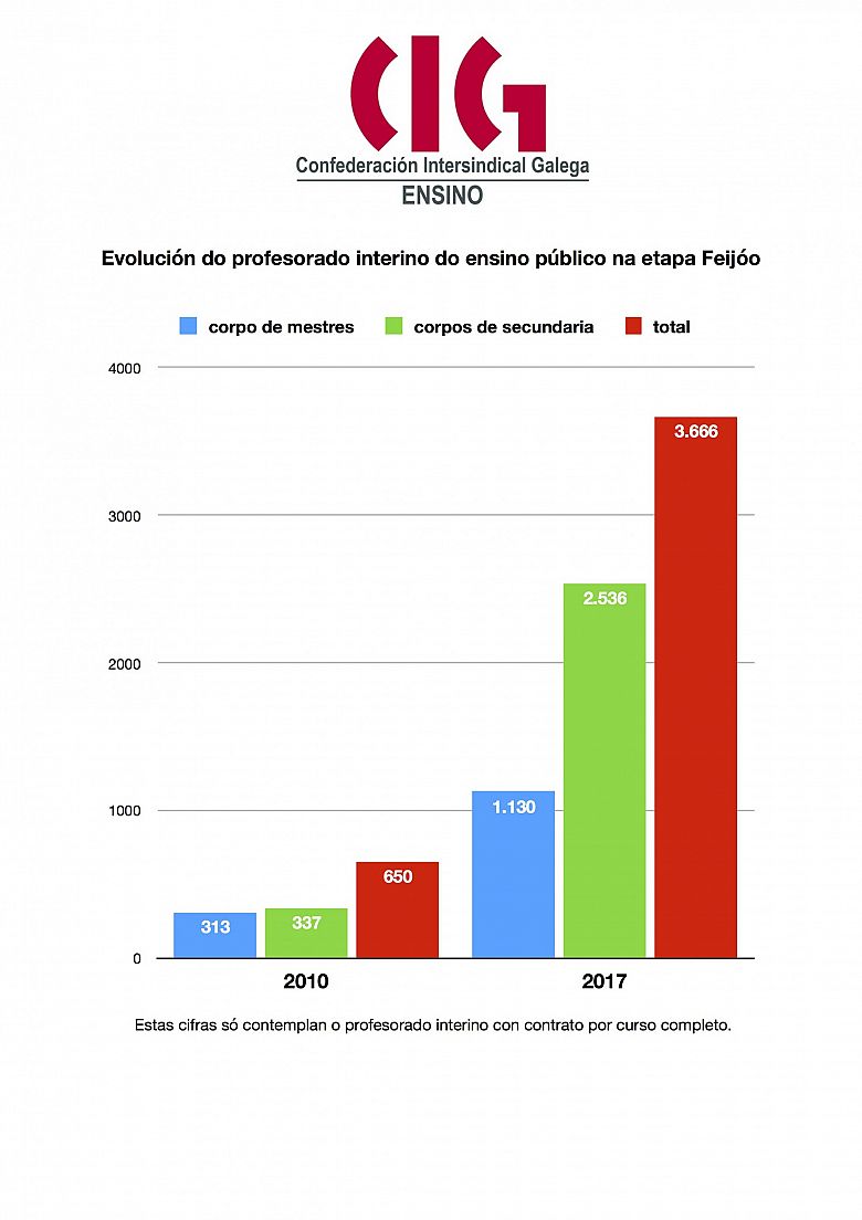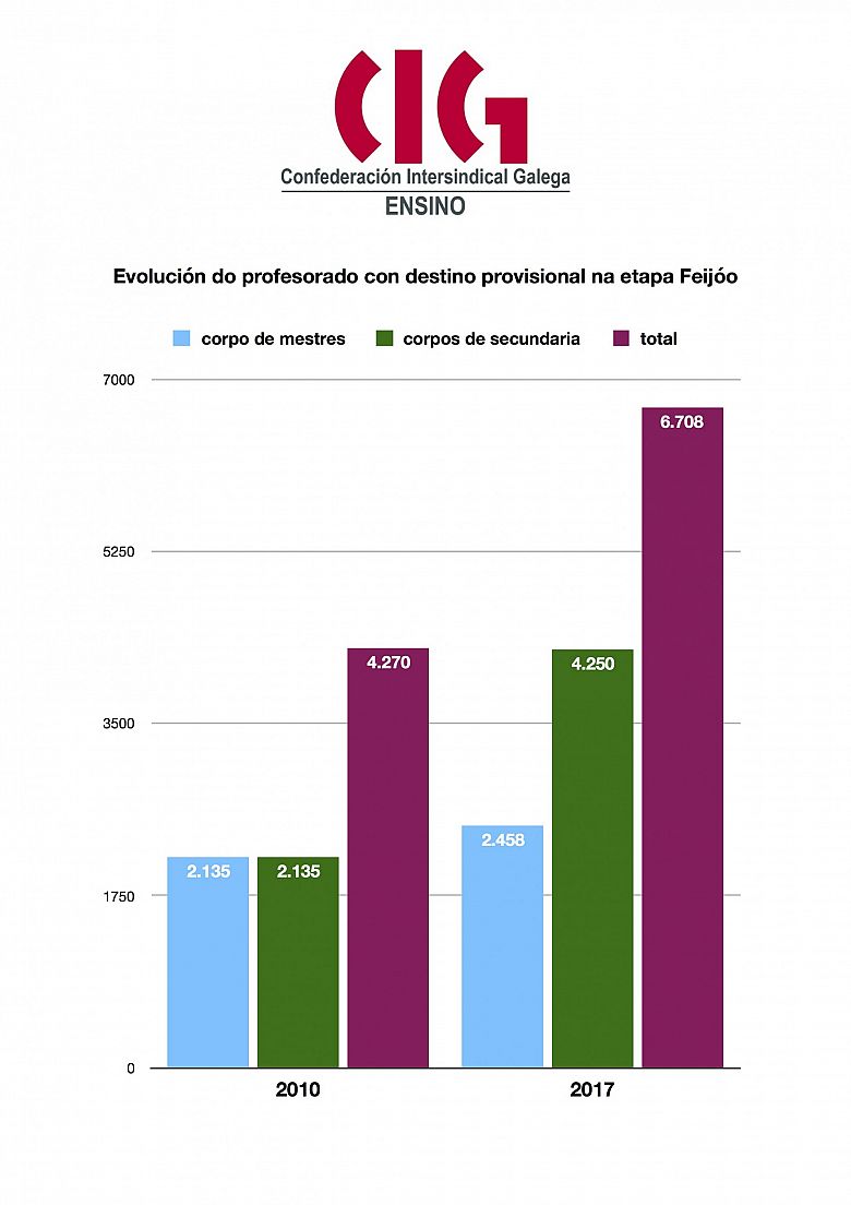 Neste sentido sinalou que no corpo de mestres/as crece o número dos/as que perderon o seu destino definitivo e volveron á provisionalidade e que medrou nun 15% o total de postos suprimidos provocando que nalgúns casos “nin sequera se cheguen a cubrir os mínimos legais fixados nos cadros de persoal”.