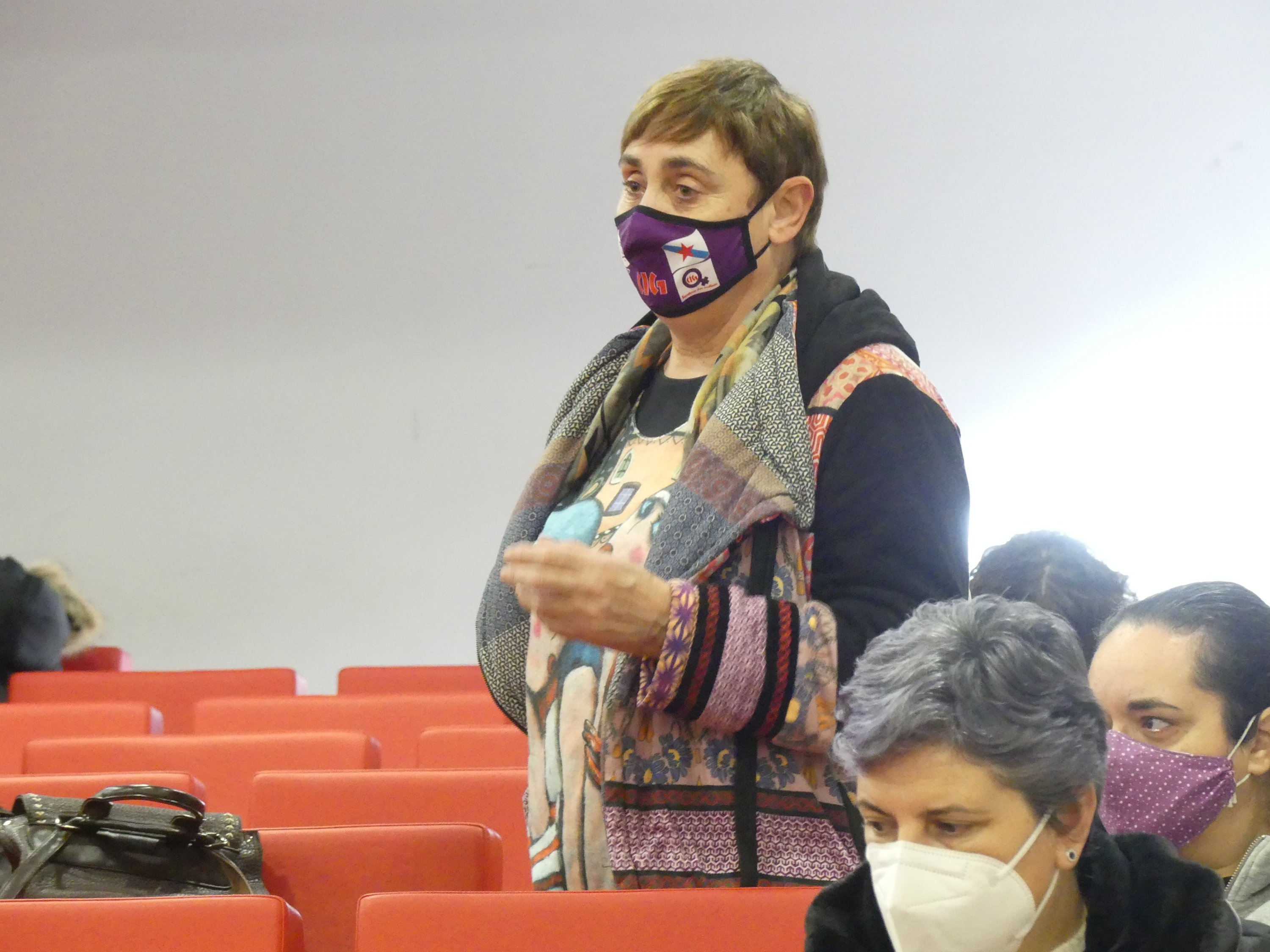 Coas distintas situacións das que as delegadas dos distintos sectores foron dando conta confirmáronse cada un dos aspectos sinalados por Corral. Así, desde a administración as compañeiras denunciaron que as traballadoras de política social e Consorcio, ademais de non poder teletraballar, como si fixo o resto do persoal, fixeron horas de máis para poder sacar o traballo adiante. Unha situación derivada da falta de persoal no caso das residencias públicas, mais tamén nos Servizos de Atención no Fogar (SAF).